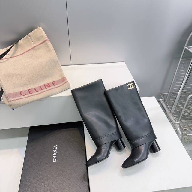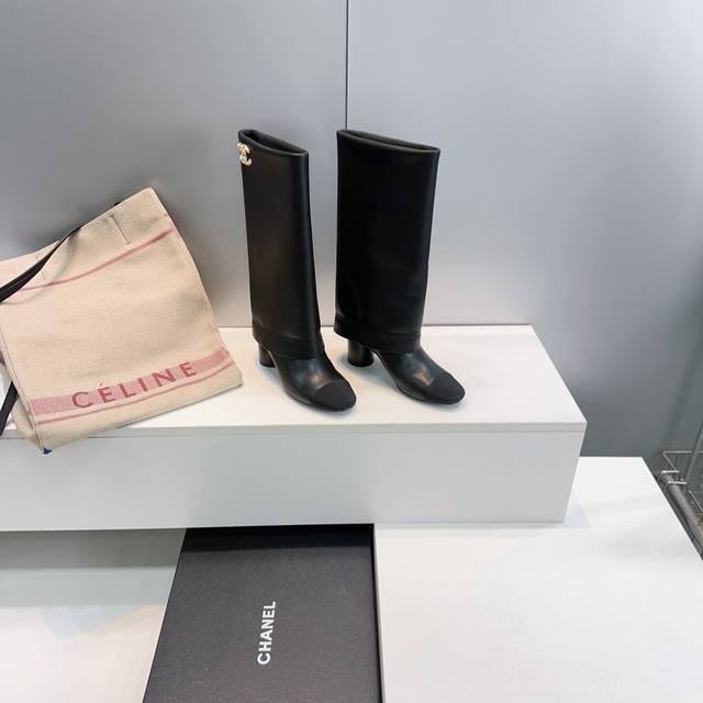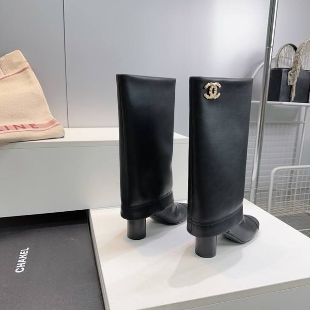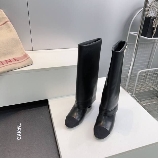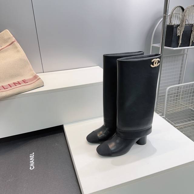高品质出厂 !顶级品质Chanel香奈儿25Ss秋冬小香秋冬拼色链条粗跟圆头一脚蹬宽筒裤管靴长靴骑士靴! 标志性的大链条设计,双C珍珠电绣Logo,把经典玩出花!粗旷却不失精致的金属链条环绕靴筒!在硬朗与柔美间达到精妙平衡 碰撞出极具冲击力的时尚火花。 行走时 链条随着步伐轻轻晃动 发出悦耳声响 举手投足间尽显潇洒不羁 。 中跟的巧妙设计 既保证了穿着的舒适度 无论是搭配简约的阔腿裤 营造随性大气的职场风格 还是与短裙短裤相配 展露青春活力的俏皮感 亦或是配上修身牛仔裤 演绎休闲时尚的都市风情, 每一步都