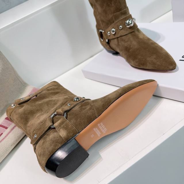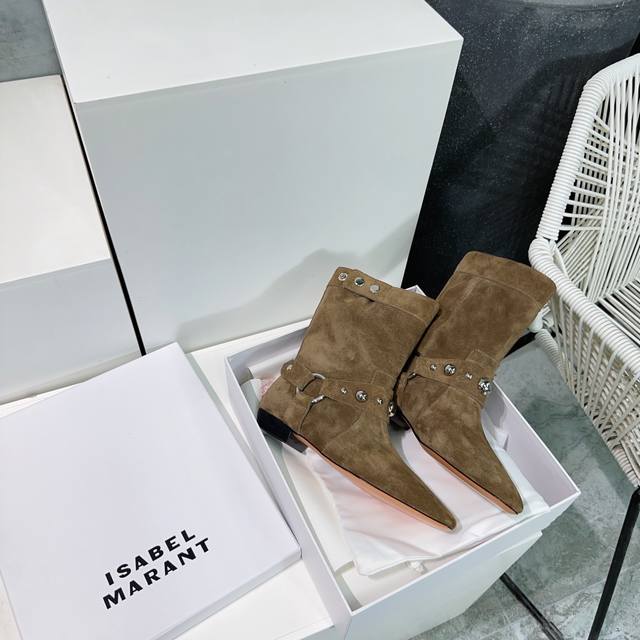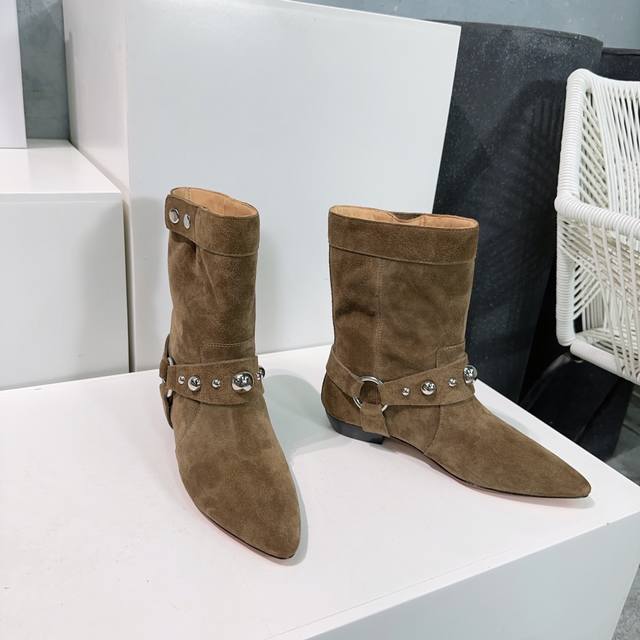 高品质出厂 !顶级品质Isabel Marant 伊莎贝尔25Ss秋冬五金扣简易尖头一脚蹬短靴!满满家族风格的一款经典女款拼接中短靴标准的欧美风格代表一个用极简风格来陈述一对靴子的牌子必不可少的一款简单靴~诠释百搭的味道!灰军绿非常高级的颜色,鞋面高丝光牛反绒,靴身超级柔软舒适,及踝的高度刚刚好,四季可搭,上脚帅气利落,慵懒风玩到了极致,酷酷女孩的时尚单品。 鞋面采用原版进口牛反绒 内里垫脚水染牛皮 意大利进口原色真皮大底 码数:35-41 40 41定做不退换 配原版包装