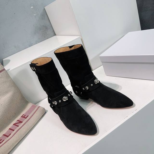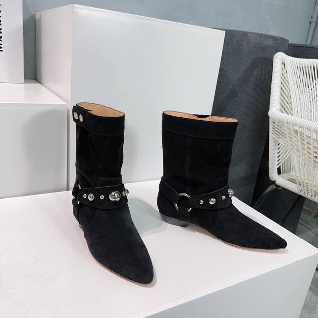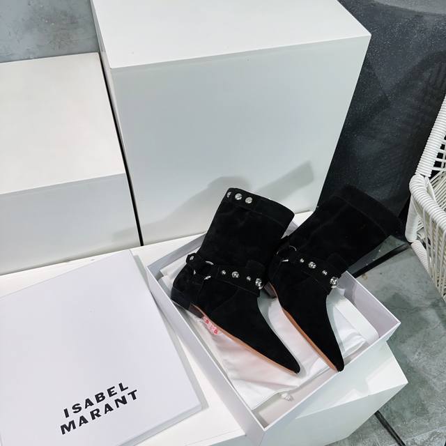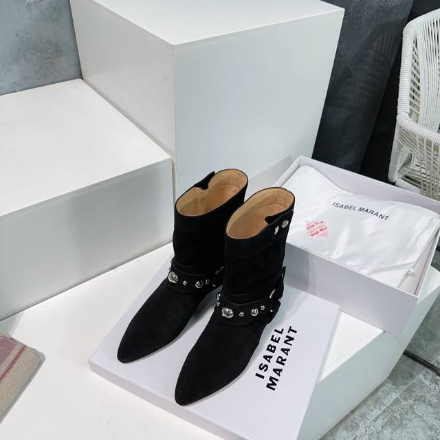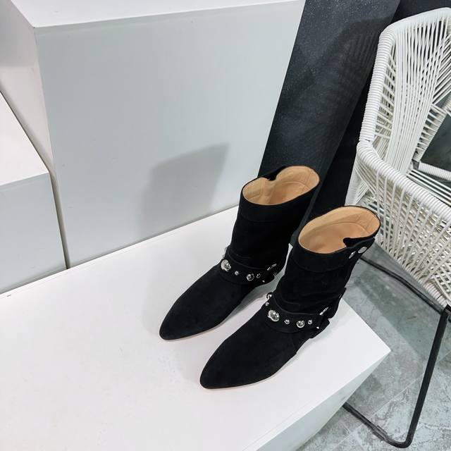 高品质出厂 !顶级品质Isabel Marant 伊莎贝尔25Ss秋冬五金扣简易尖头一脚蹬短靴!满满家族风格的一款经典女款拼接中短靴标准的欧美风格代表一个用极简风格来陈述一对靴子的牌子必不可少的一款简单靴~诠释百搭的味道!灰军绿非常高级的颜色,鞋面高丝光牛反绒,靴身超级柔软舒适,及踝的高度刚刚好,四季可搭,上脚帅气利落,慵懒风玩到了极致,酷酷女孩的时尚单品。 鞋面采用原版进口牛反绒 内里垫脚水染牛皮 意大利进口原色真皮大底 码数:35-41 40 41定做不退换 配原版包装