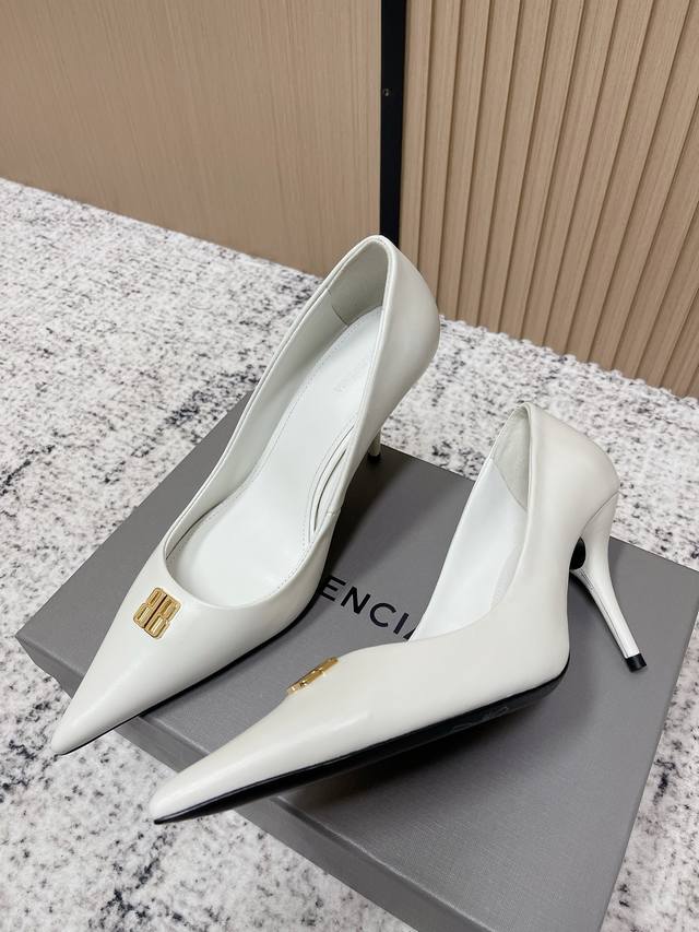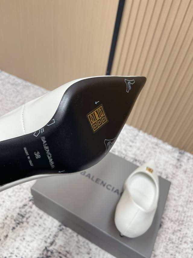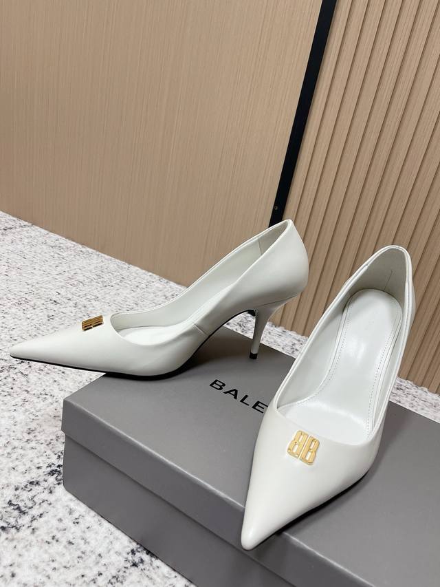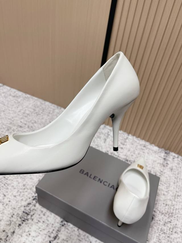 高品质出厂: Balenciaga巴黎世家 26春夏新款Bb扣尖头五金扣饰气质高跟鞋后空凉鞋单鞋系列 原版购入开发!经典巴黎家独有的时尚魅力,上脚超有范!!秋冬搭配也是Yyds 鞋面采用进口混种羊皮 内里垫脚羊皮 五金正品开发 意大利进口真皮大底 ! 跟高:8.5Cm 码数:35-40 40.定做不退换