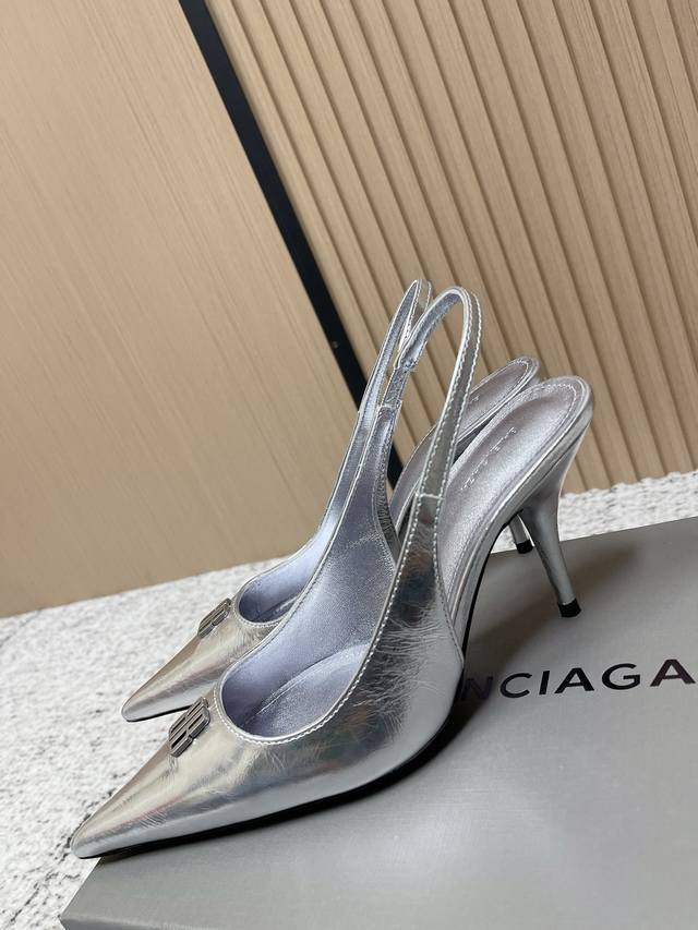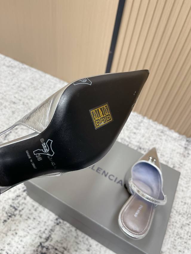 高品质出厂: Balenciaga巴黎世家 26春夏新款Bb扣尖头五金扣饰气质高跟鞋后空凉鞋单鞋系列 原版购入开发!经典巴黎家独有的时尚魅力,上脚超有范!!秋冬搭配也是Yyds 鞋面采用进口混种羊皮 内里垫脚羊皮 五金正品开发 意大利进口真皮大底 ! 跟高:8.5Cm 码数:35-40 40.定做不退换