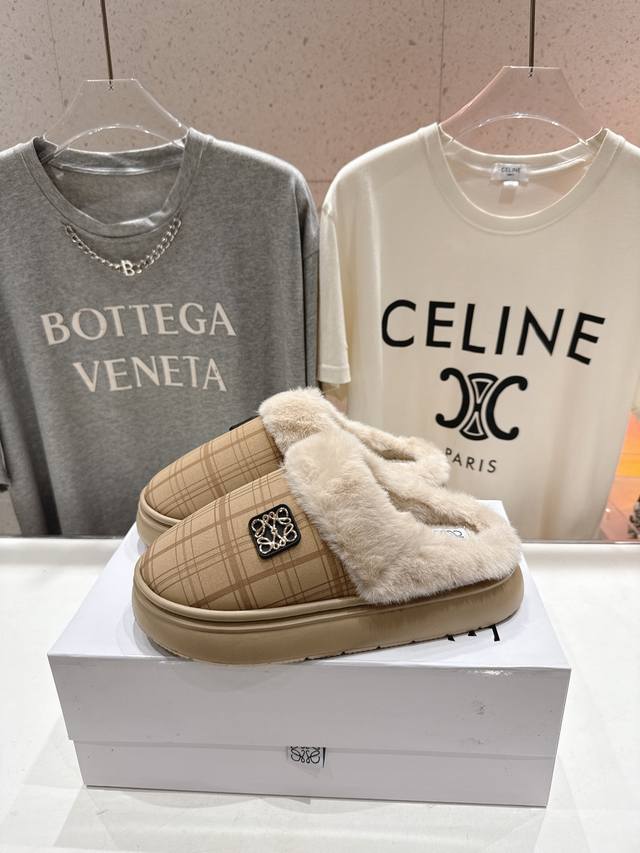 高版本出厂 Loewe 罗意威F036 2025Ss秋冬火爆新款 超有辨识度的可爱毛毛拖鞋,简约的时尚设计,配合整体原版楦型,时尚舒适好穿 面料:原版进口布面