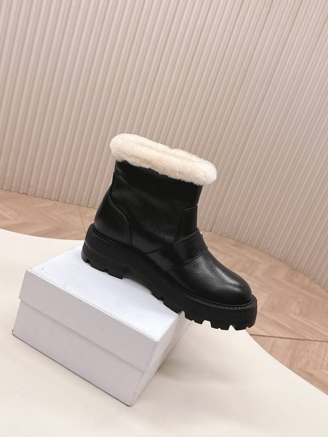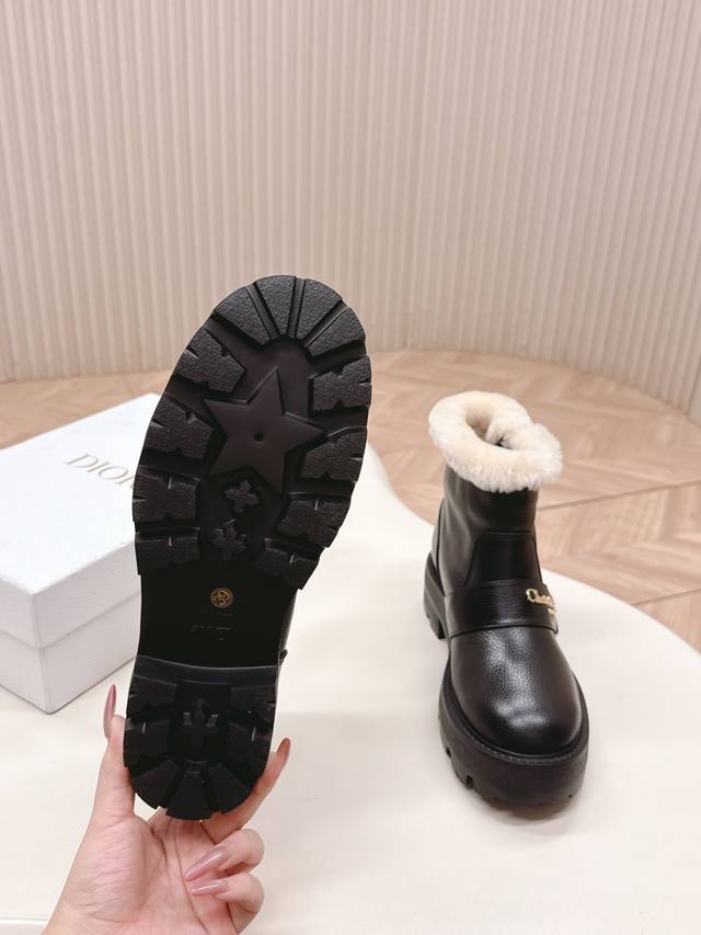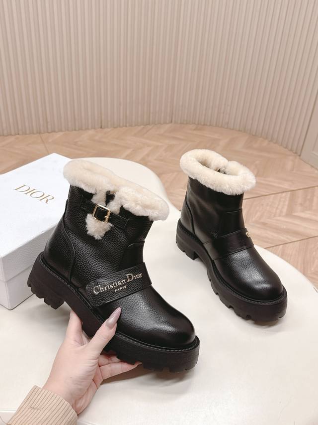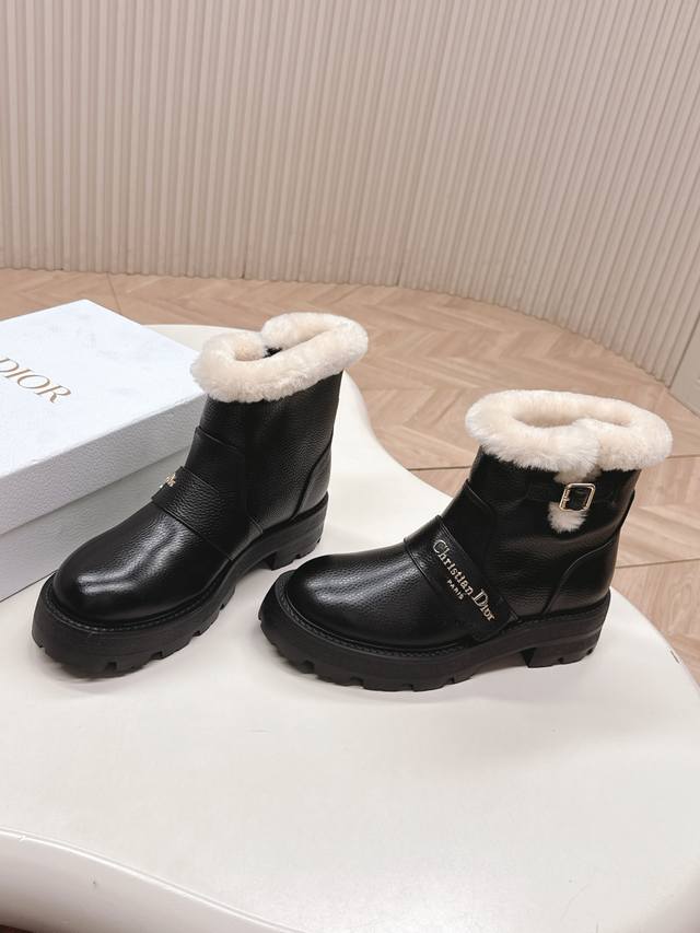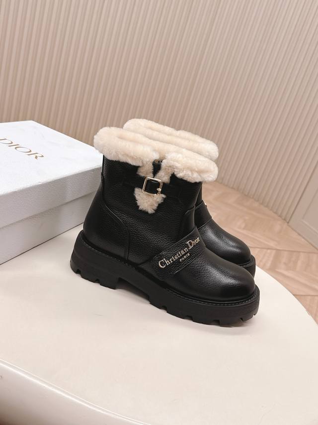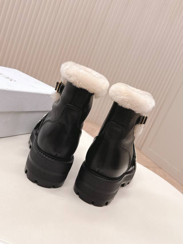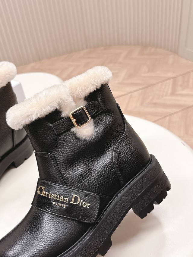 高版 出 Dior 迪奥 一脚蹬时尚羊毛短靴马丁靴 冬季时尚保暖 全牛皮面 加厚羊羔毛