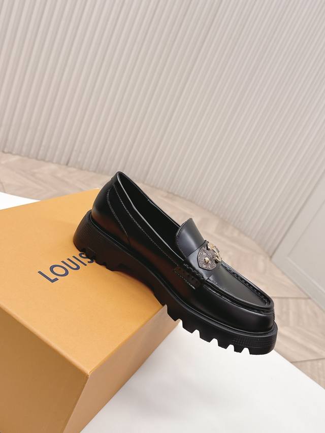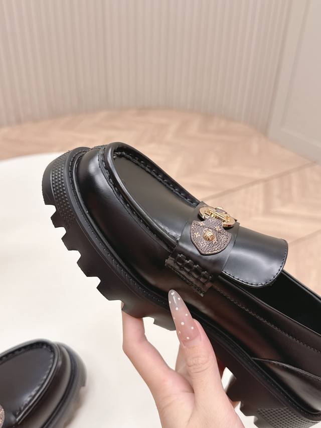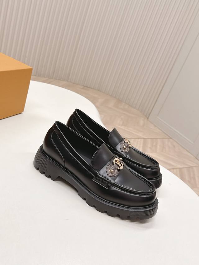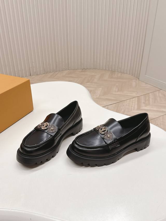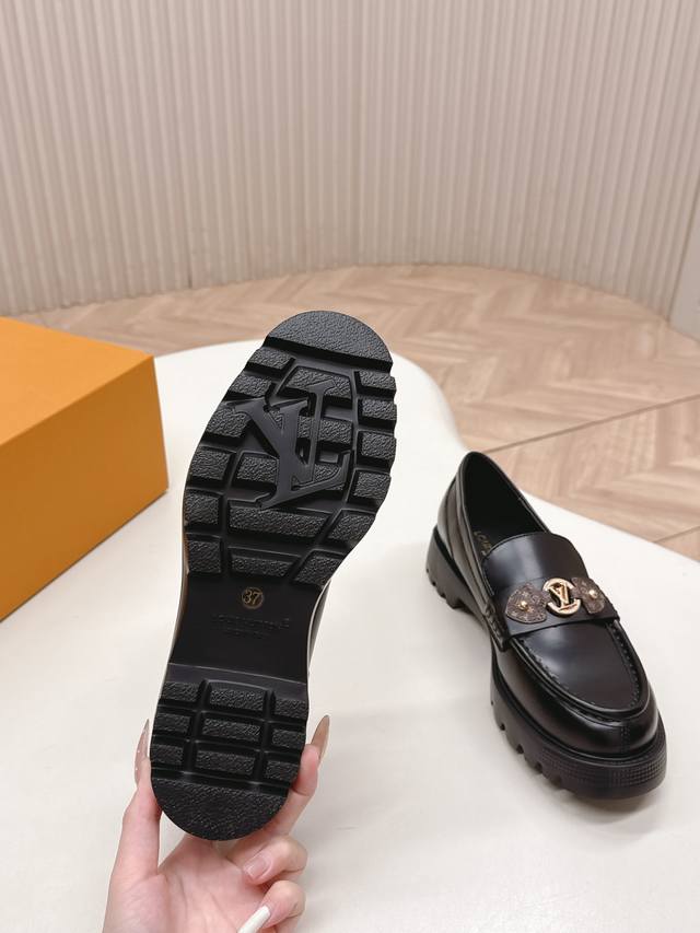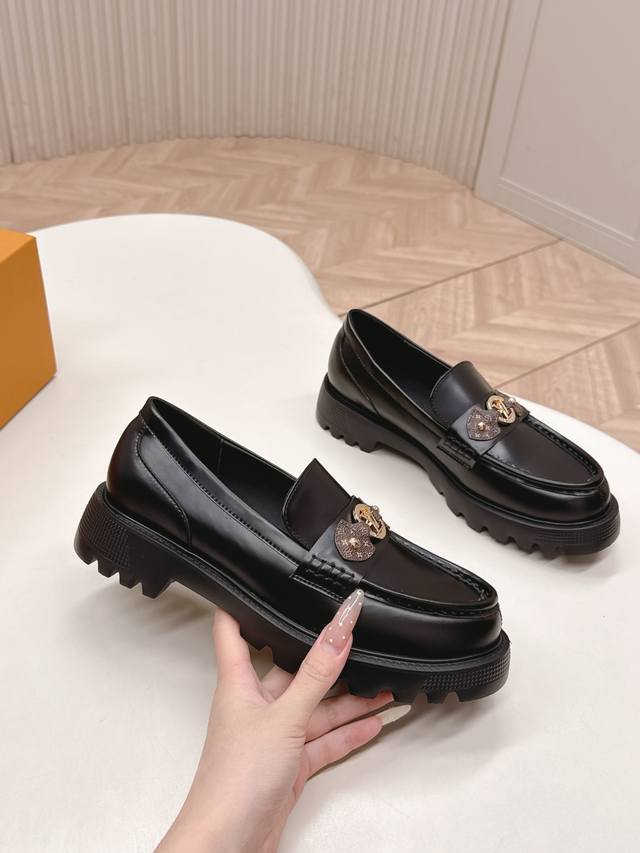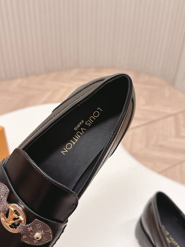 / 高版 出 Lv驴牌 26春款 新款单鞋小皮鞋 乐福鞋 楦型百搭瘦脚Yyds.造型立体饱满,帅气十足 上脚舒适 非常复古风、气场十足,原版老花加金属链条设计风格非
