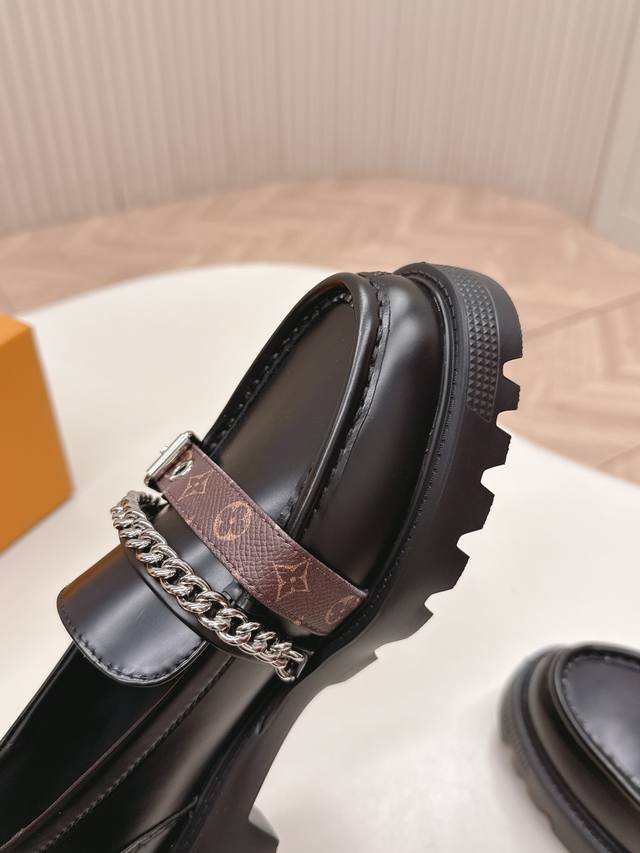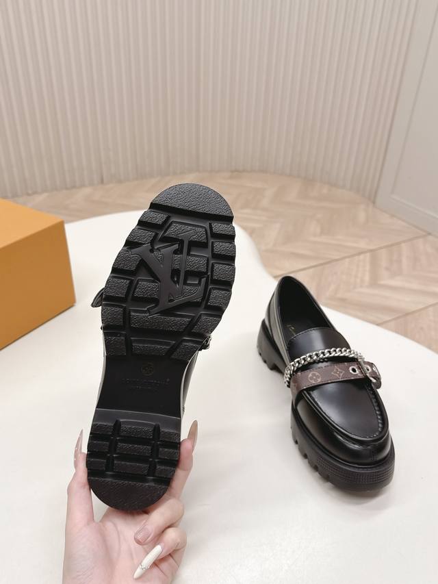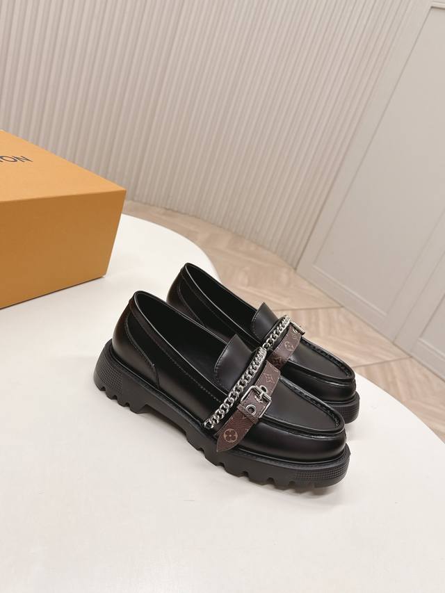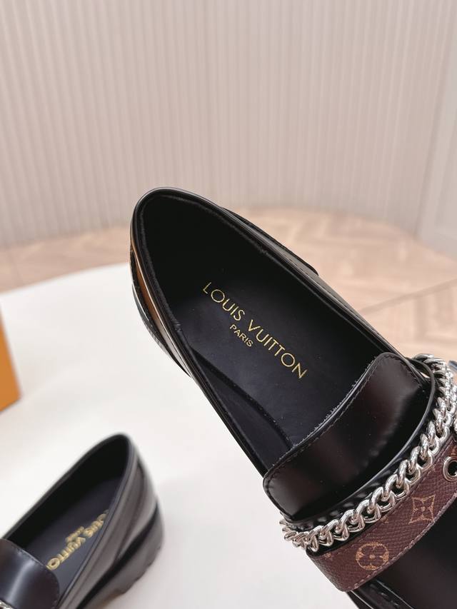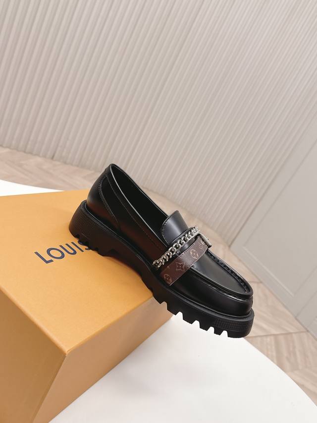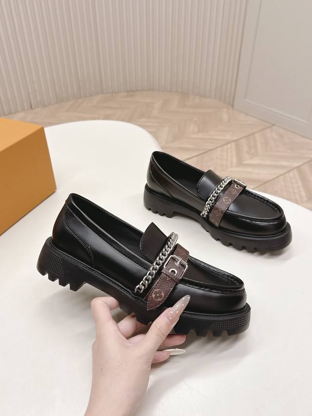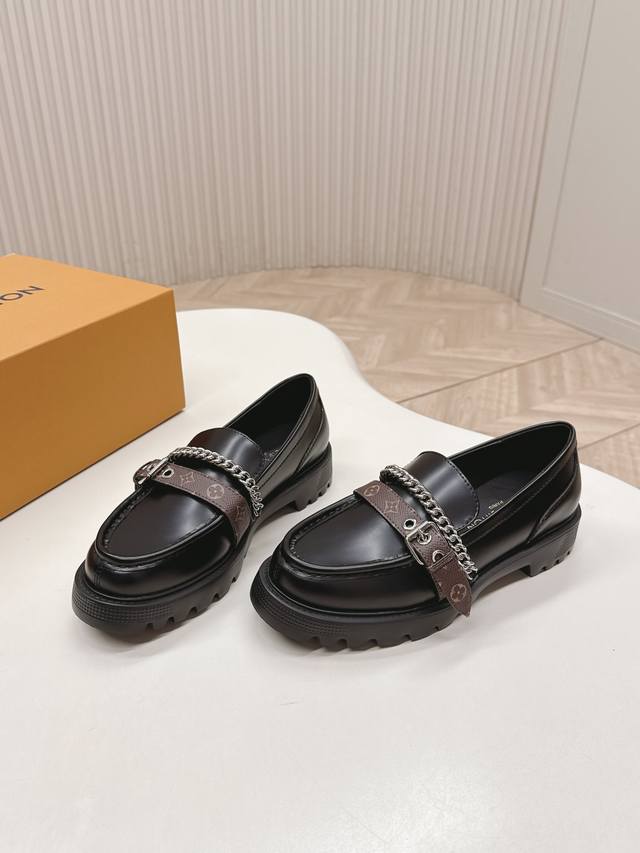 / 高版 出 Lv驴牌 26春款 新款单鞋小皮鞋 乐福鞋 楦型百搭瘦脚Yyds.造型立体饱满,帅气十足 上脚舒适 非常复古风、气场十足,原版老花加金属链条设计风格非