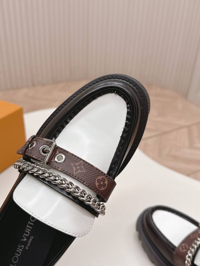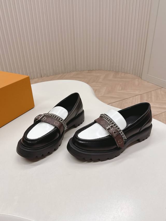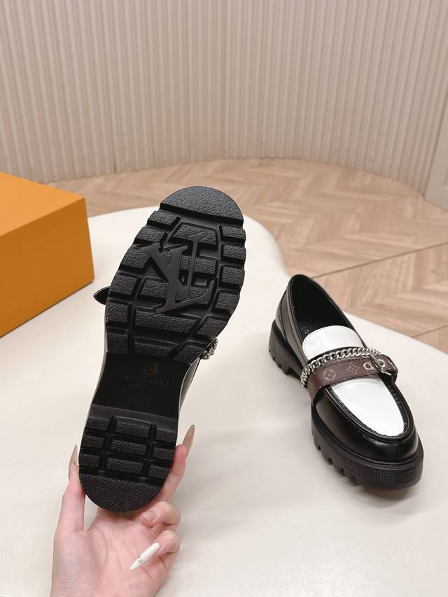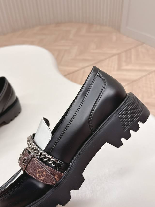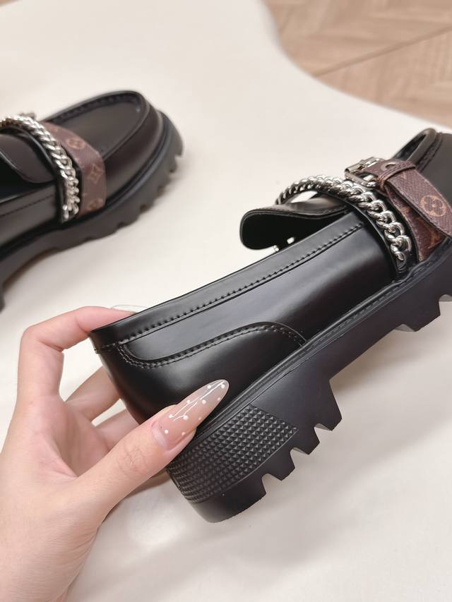 / 高版 出 Lv驴牌 26春款 新款单鞋小皮鞋 乐福鞋 楦型百搭瘦脚Yyds.造型立体饱满,帅气十足 上脚舒适 非常复古风、气场十足,原版老花加金属链条设计风格非