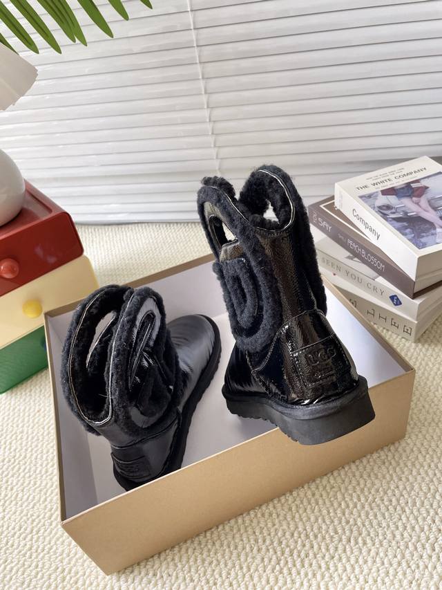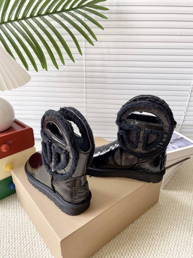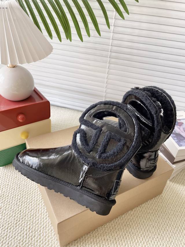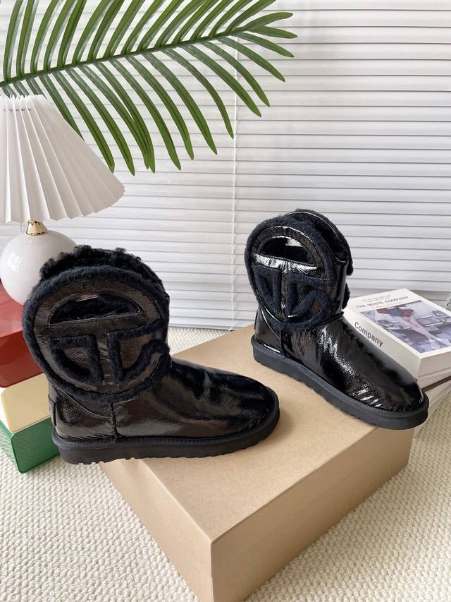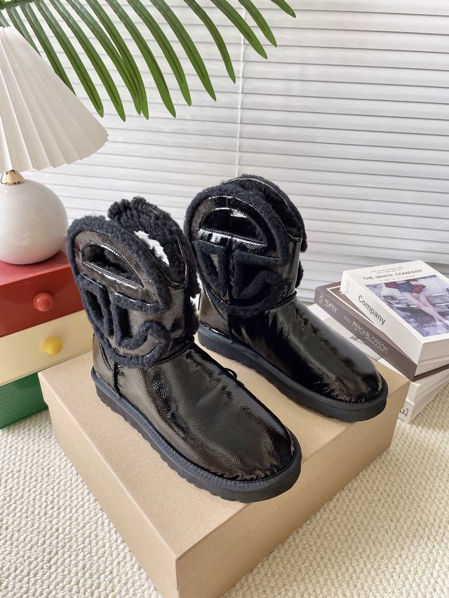 黑光皮 秋冬款毛毛鞋雪地靴 舒适平底纯色圆头时尚休闲短靴 牛皮磨砂面+内里真羊毛 颜色:黑皮 黑色。栗色。牛仔布 码数35-40 40定做