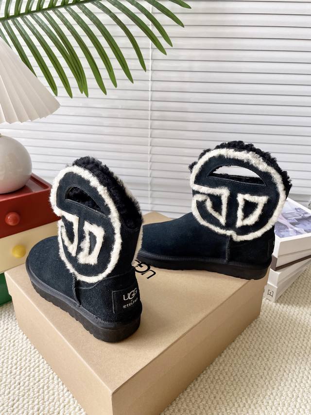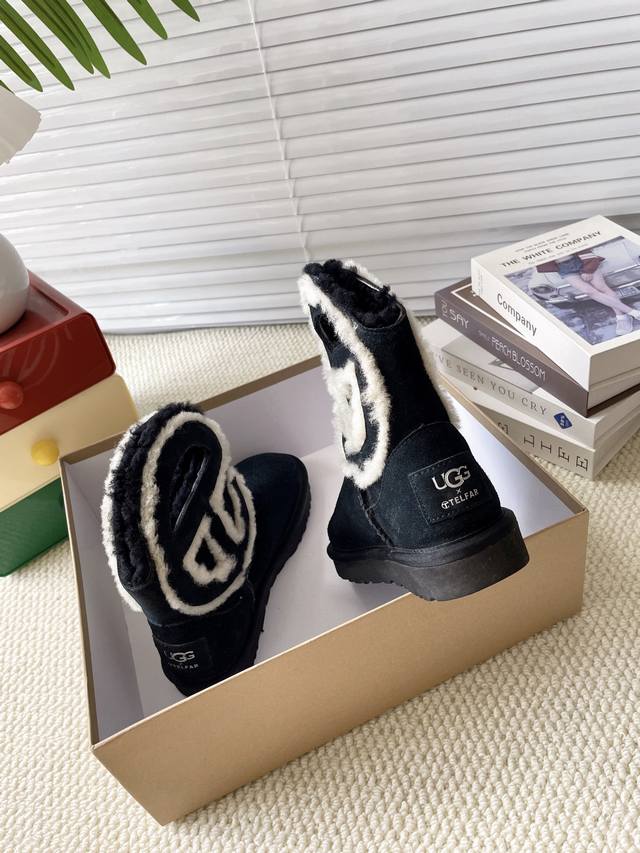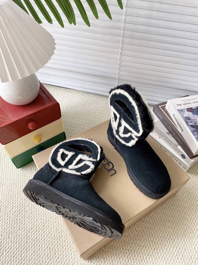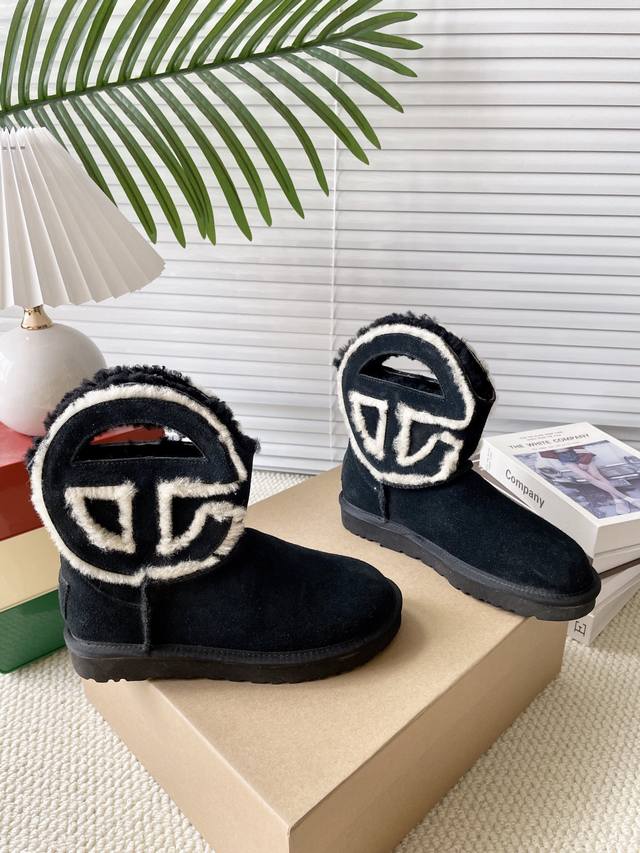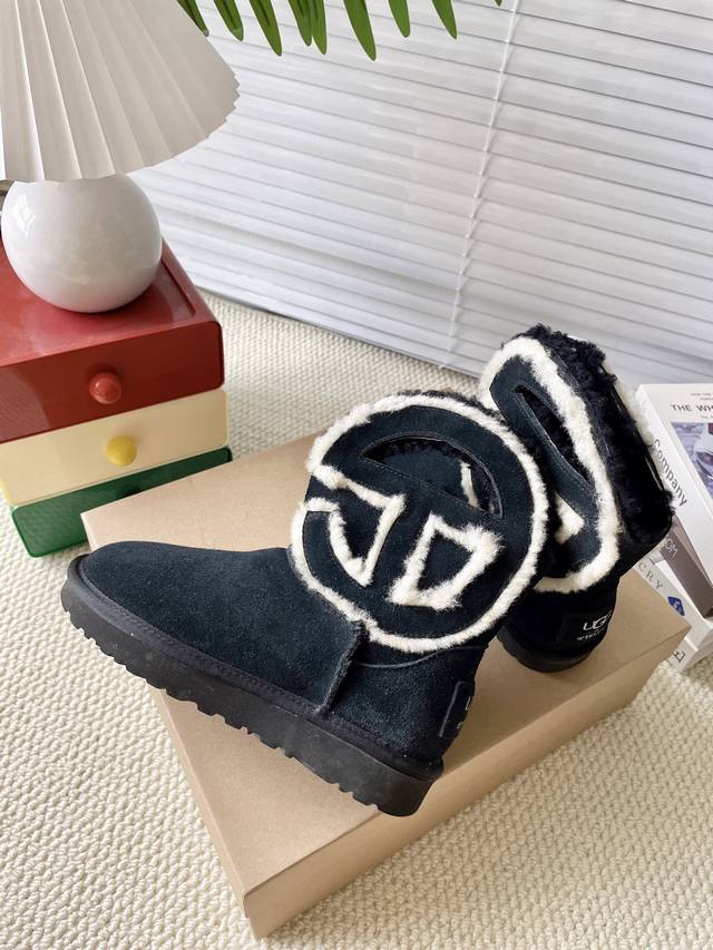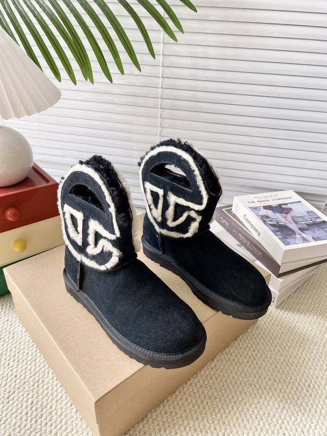 黑色经典牛反绒 秋冬款毛毛鞋雪地靴 舒适平底纯色圆头时尚休闲短靴 牛皮磨砂面+内里真羊毛 颜色:黑皮 黑色。栗色。牛仔布 码数35-40 40定做