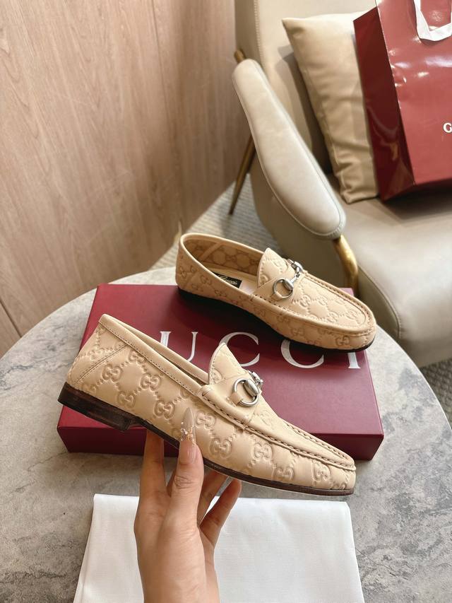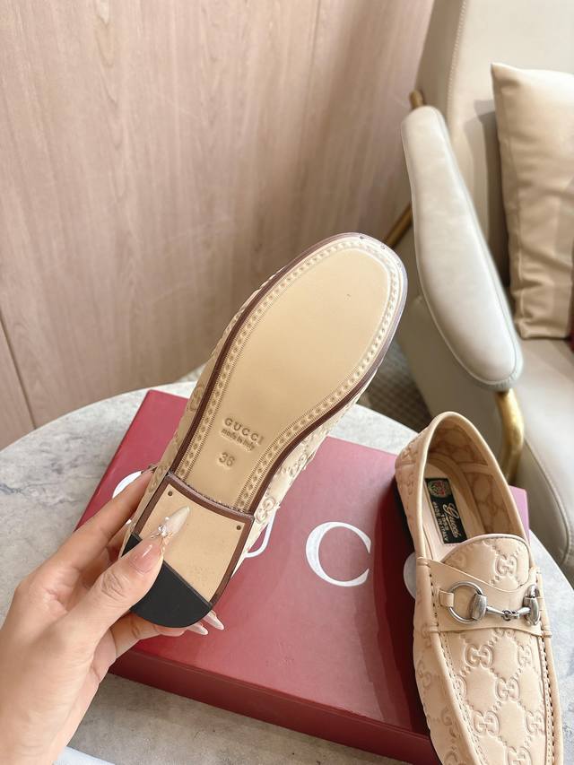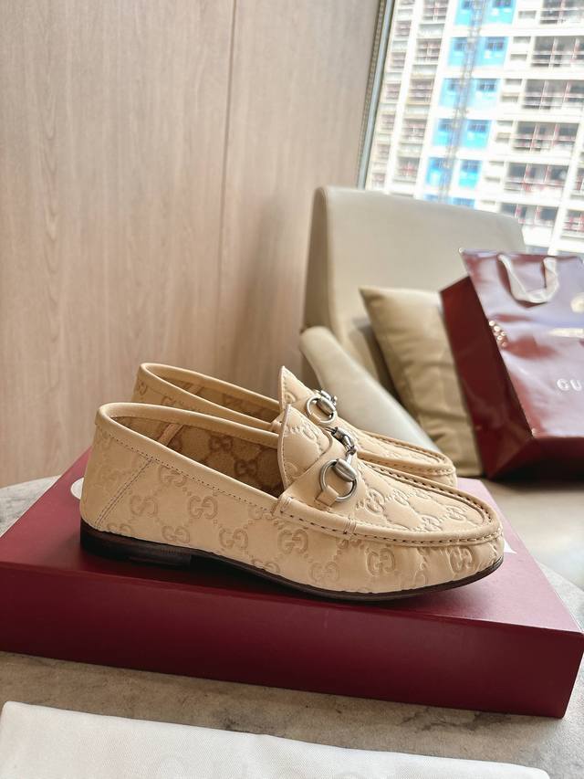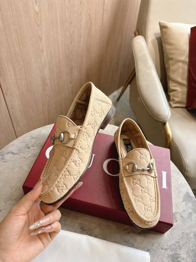 / 1054-2 灰 35-42 这款女士乐福鞋廓形优雅,采用精致的Gg绒面材质,现代时尚又不失经典韵味。别致马衔扣配件以银色饰面闪耀呈现,为整个设计倍添魅力。 燕