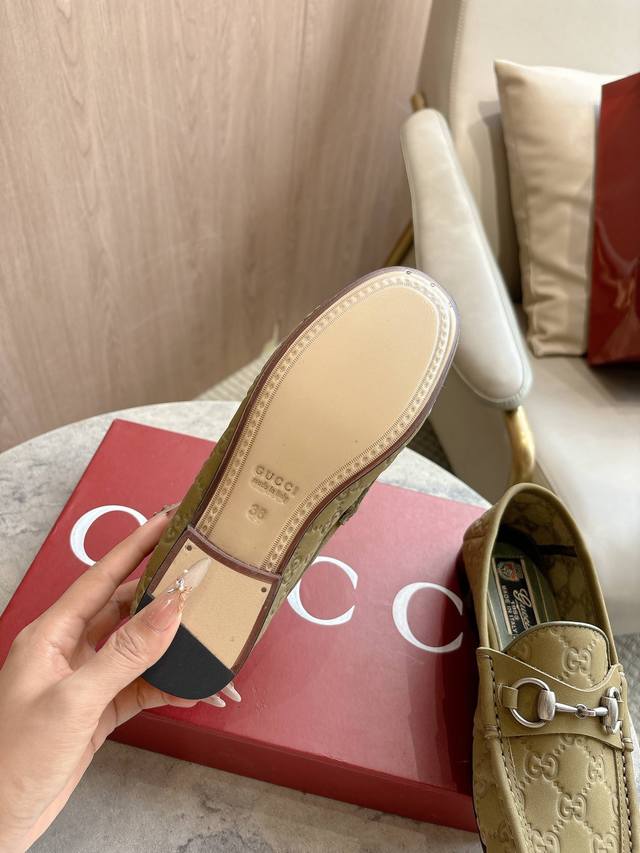 / 1054-2 绿 35-42 这款女士乐福鞋廓形优雅,采用精致的Gg绒面材质,现代时尚又不失经典韵味。别致马衔扣配件以银色饰面闪耀呈现,为整个设计倍添魅力。 绿