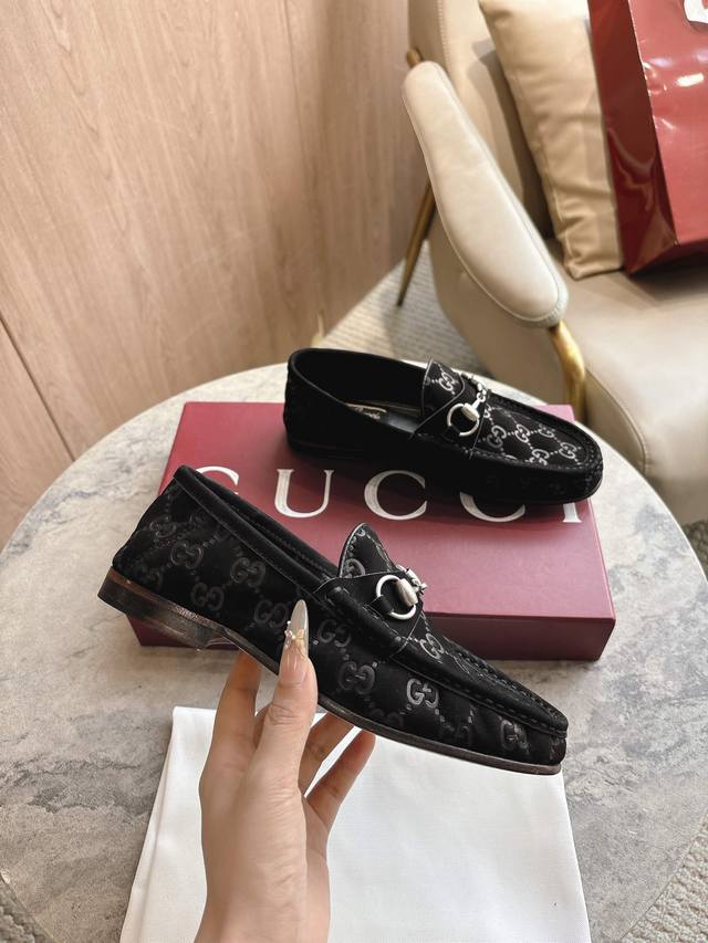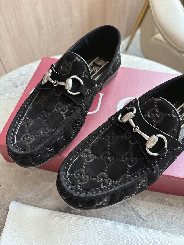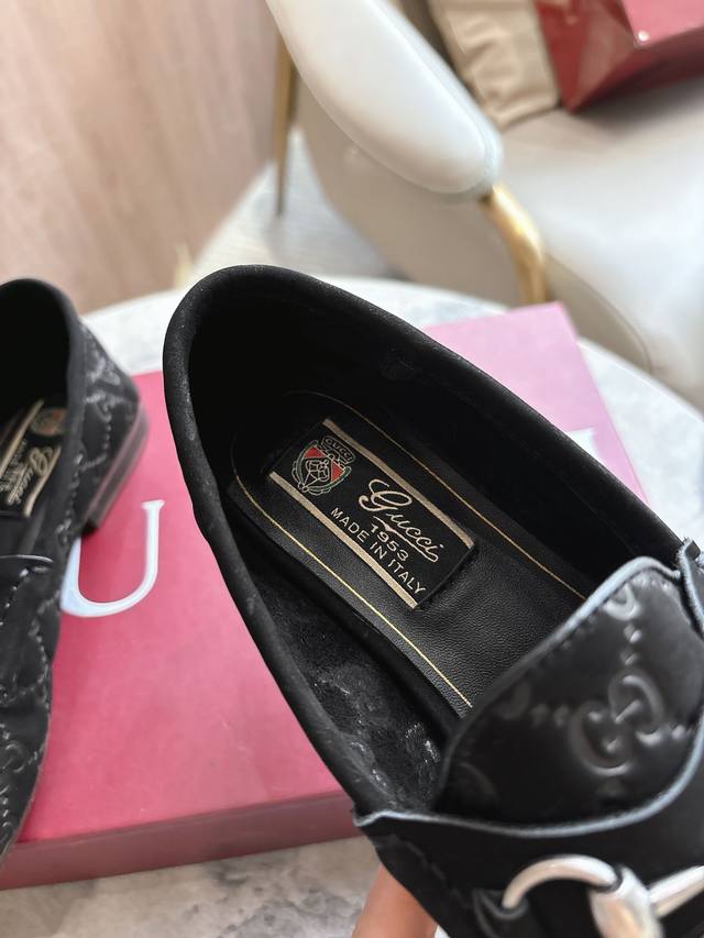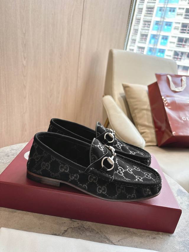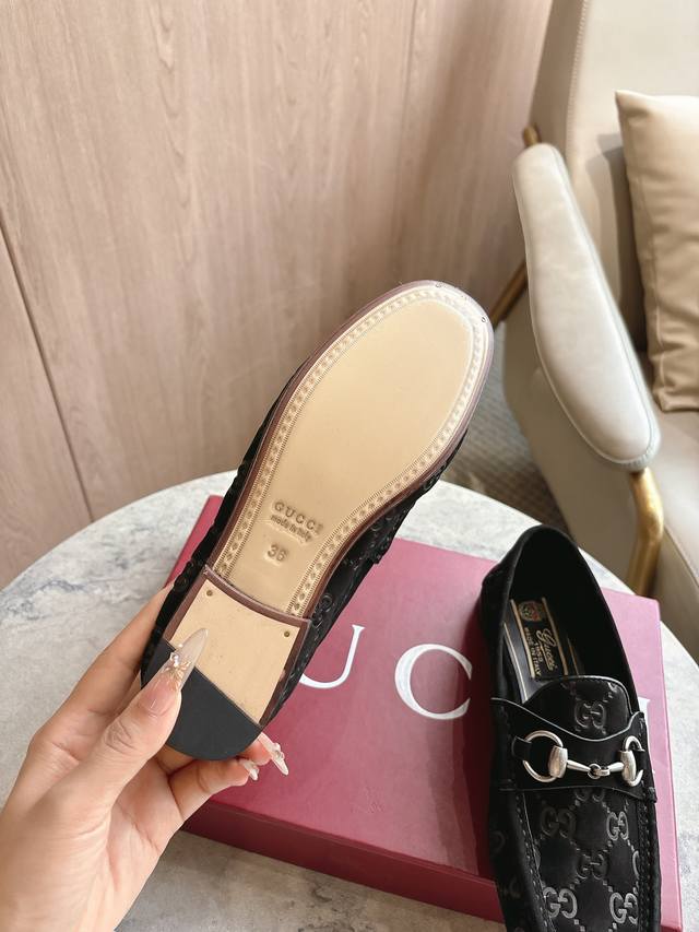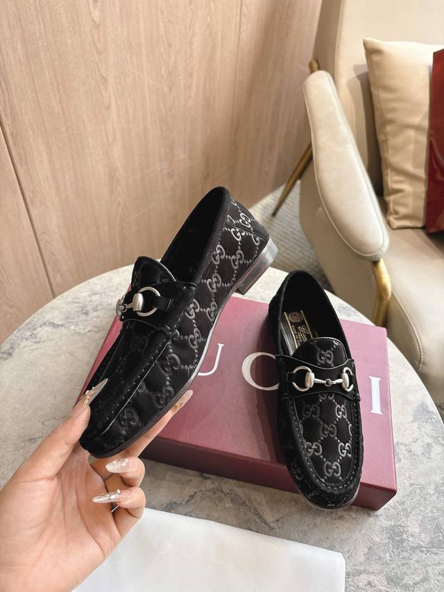 / 1054-2 黑 35-42 这款女士乐福鞋廓形优雅,采用精致的Gg绒面材质,现代时尚又不失经典韵味。别致马衔扣配件以银色饰面闪耀呈现,为整个设计倍添魅力。 黑