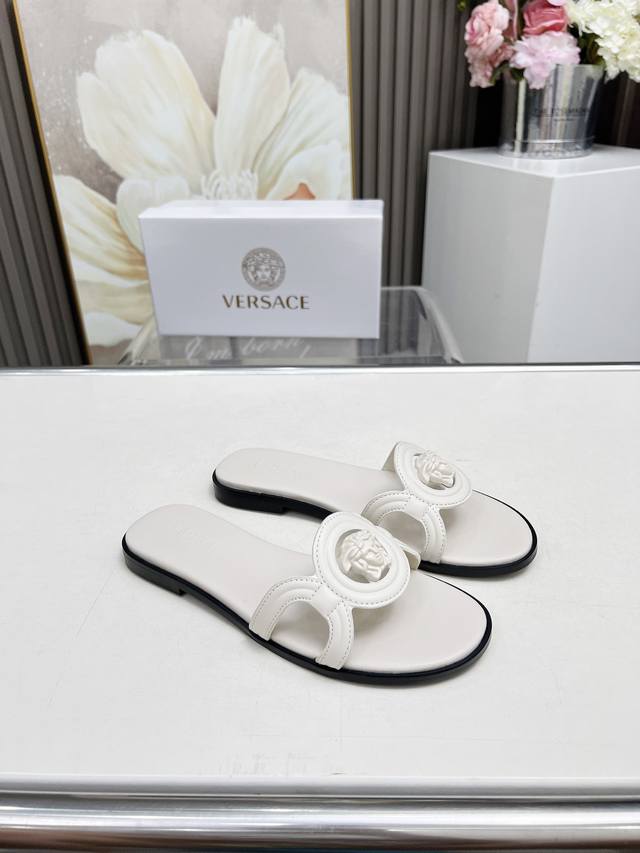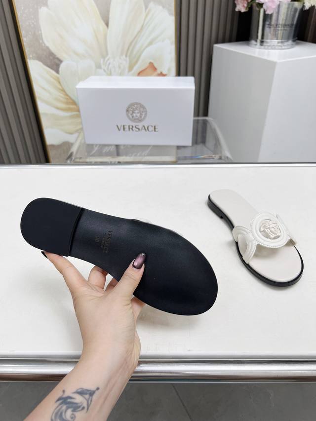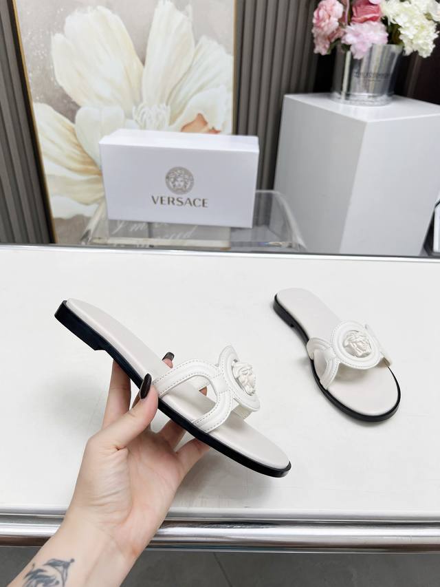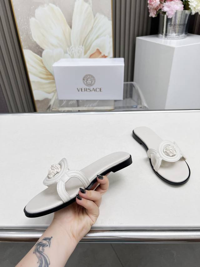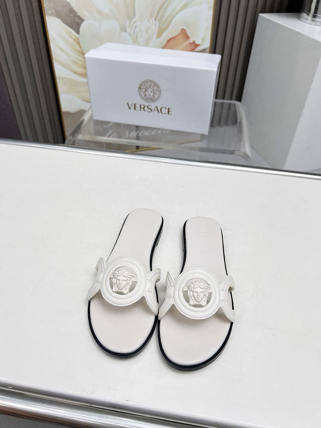 / 186一9 Versace 最新爆款 专柜原版鞋开模制作 原版五金扣开模 大牌明星最爱的奢侈品 面料:小牛皮 内里:羊皮 跟高8毫米 码数:35-43码。 44