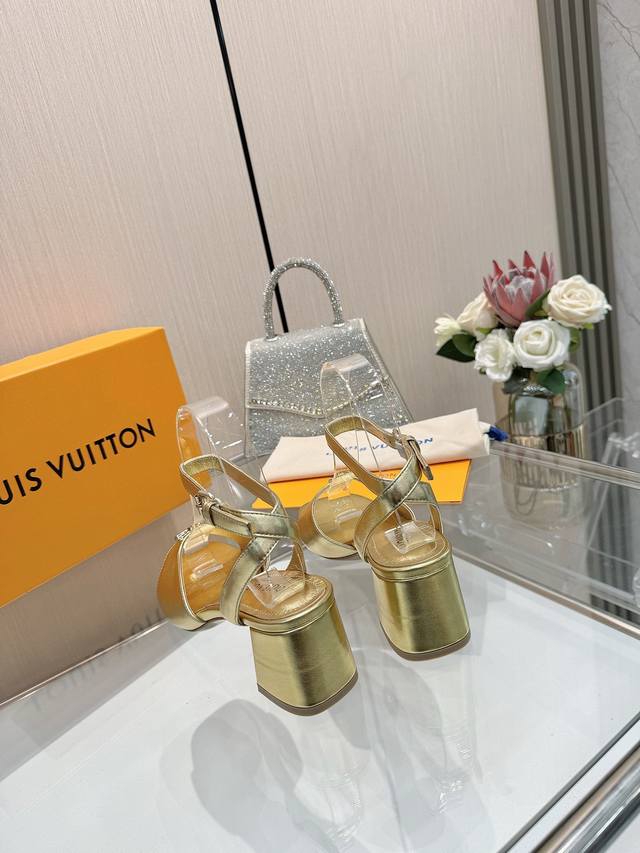 2025最新L家春夏款专柜最新走秀凉鞋、官网系列同步更新、工厂P批P: 、完美楦型+小V扣设计、再现经典、款式简单大方、走路不累脚、不挑人、上脚大气好看、原版倒模楦型,极致1:1形体,高端品质、进口高端面料呈现出精致质感! 面料:进口牛漆皮 老花皮 进口小牛皮 内里:优质柔软羊皮里 垫脚:进口山羊皮 开模定制A级高密私模大底,奢华包装! 5.5公分面皮包跟+电镀设计 码数:35-40、 34.40.41定制不退换
