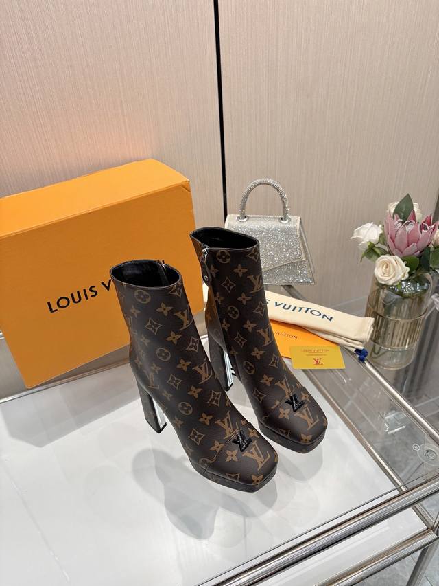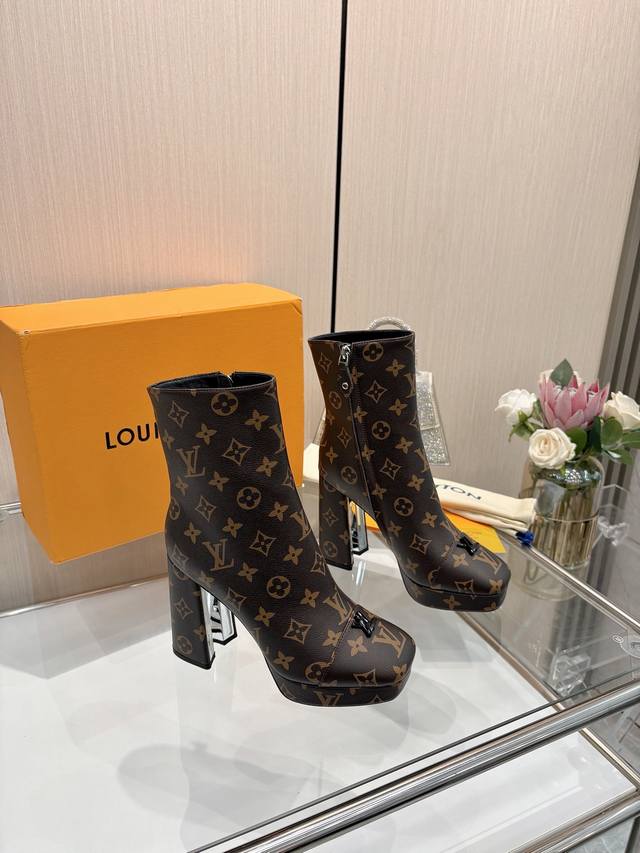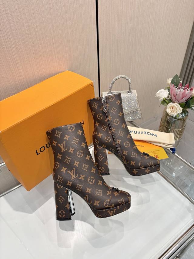2025最新L家秋冬专柜最新走秀6寸水台短靴、官网系列、同步更新、工厂P批P: 、完美楦型+小V扣+水台设计、再现经典、款式简单大方、走路不累脚、不挑人、上脚大气好看、原版倒模楦型,极致1:1形体,高端品质、进口高端面料呈现出精致质感! 面料:进口小牛皮 荔枝纹 老花皮 牛仔布 内里:优质柔软羊皮里 垫脚:进口山羊皮 开模定制A级高密私模大底,奢华包装! 11公分面皮包跟 2公分水台包皮 电镀设计 码数:35-40、 34.40.41定制不退换