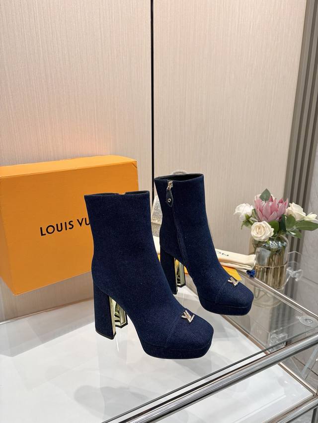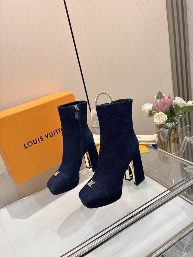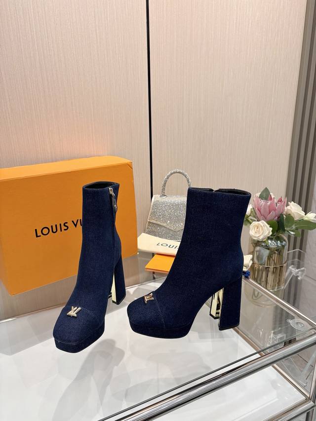 2025最新L家秋冬专柜最新走秀6寸水台短靴、官网系列、同步更新、工厂P批P: 、完美楦型+小V扣+水台设计、再现经典、款式简单大方、走路不累脚、不挑人、上脚大气好看、原版倒模楦型,极致1:1形体,高端品质、进口高端面料呈现出精致质感! 面料:进口小牛皮 荔枝纹 老花皮 牛仔布 内里:优质柔软羊皮里 垫脚:进口山羊皮 开模定制A级高密私模大底,奢华包装! 11公分面皮包跟 2公分水台包皮 电镀设计 码数:35-40、 34.40.41定制不退换