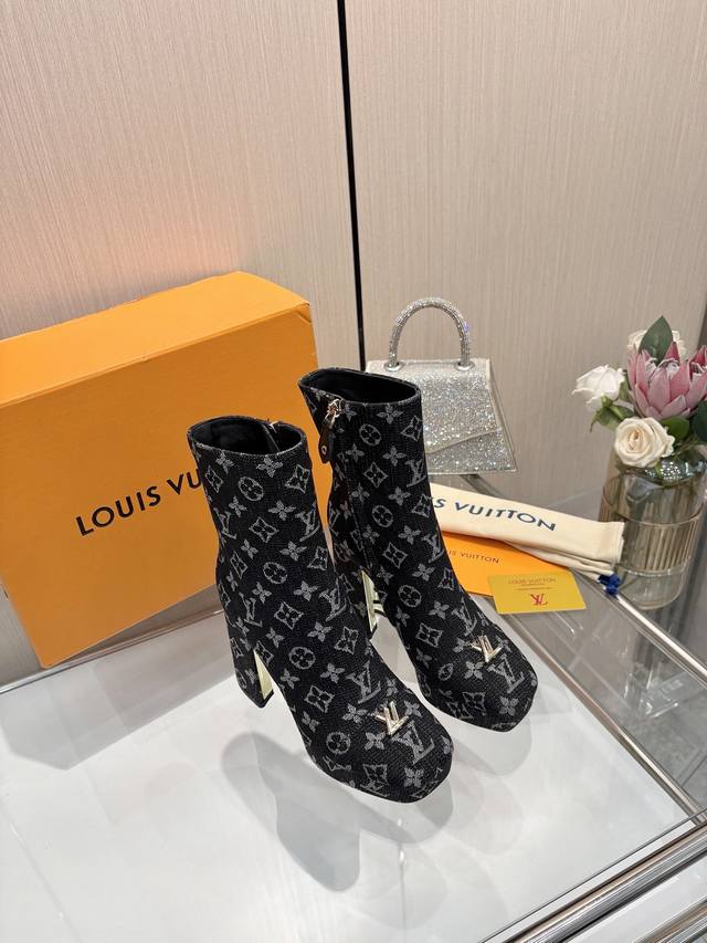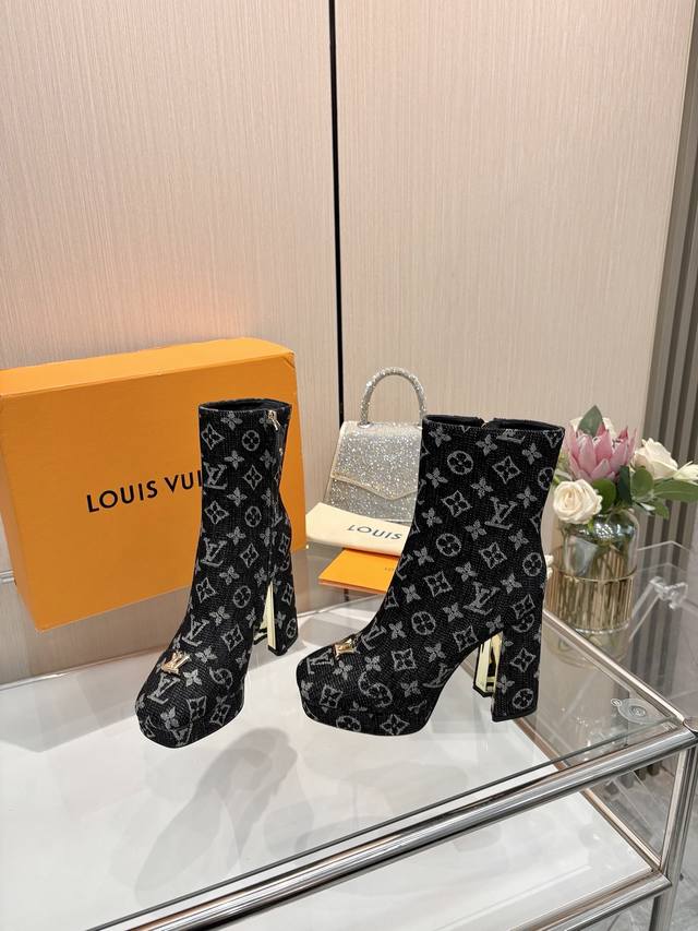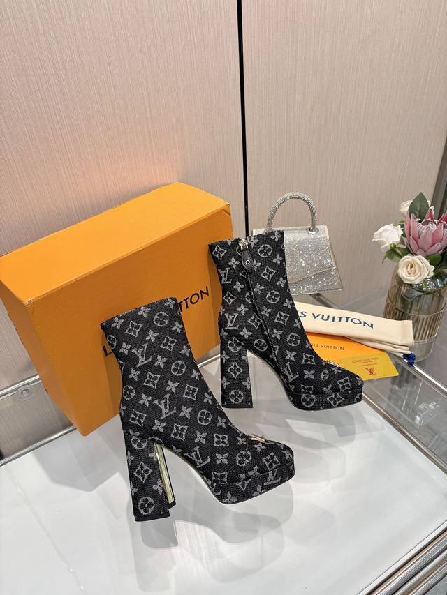 2025最新L家秋冬专柜最新走秀6寸水台短靴、官网系列、同步更新、工厂P批P: 、完美楦型+小V扣+水台设计、再现经典、款式简单大方、走路不累脚、不挑人、上脚大气好看、原版倒模楦型,极致1:1形体,高端品质、进口高端面料呈现出精致质感! 面料:进口小牛皮 荔枝纹 老花皮 牛仔布 内里:优质柔软羊皮里 垫脚:进口山羊皮 开模定制A级高密私模大底,奢华包装! 11公分面皮包跟 2公分水台包皮 电镀设计 码数:35-40、 34.40.41定制不退换