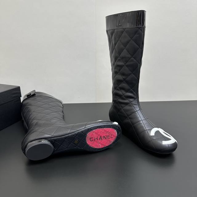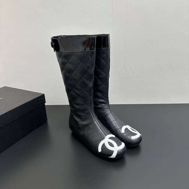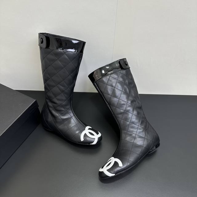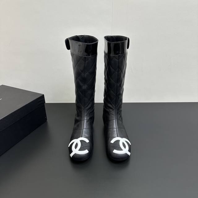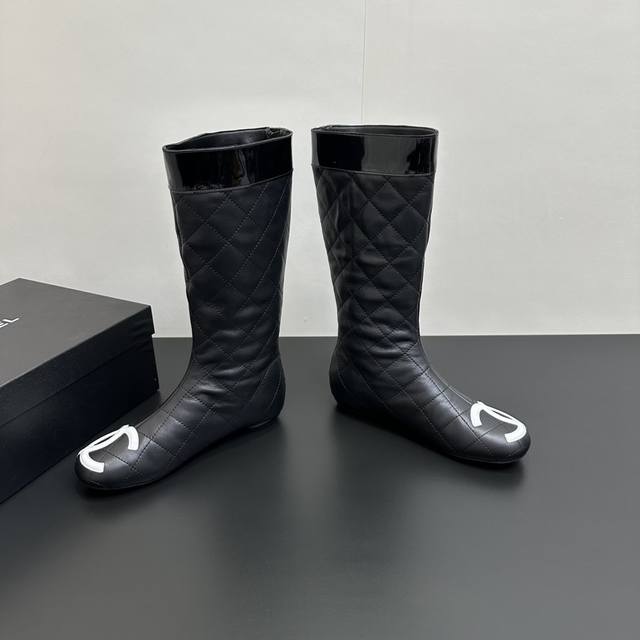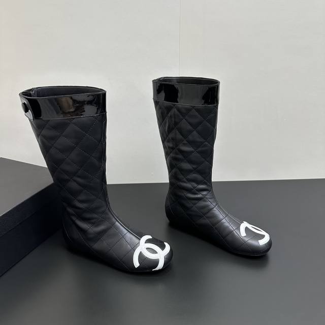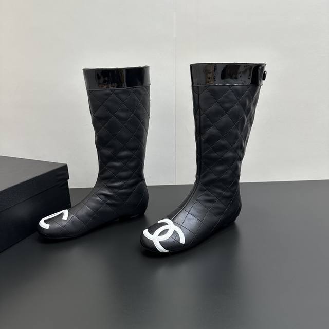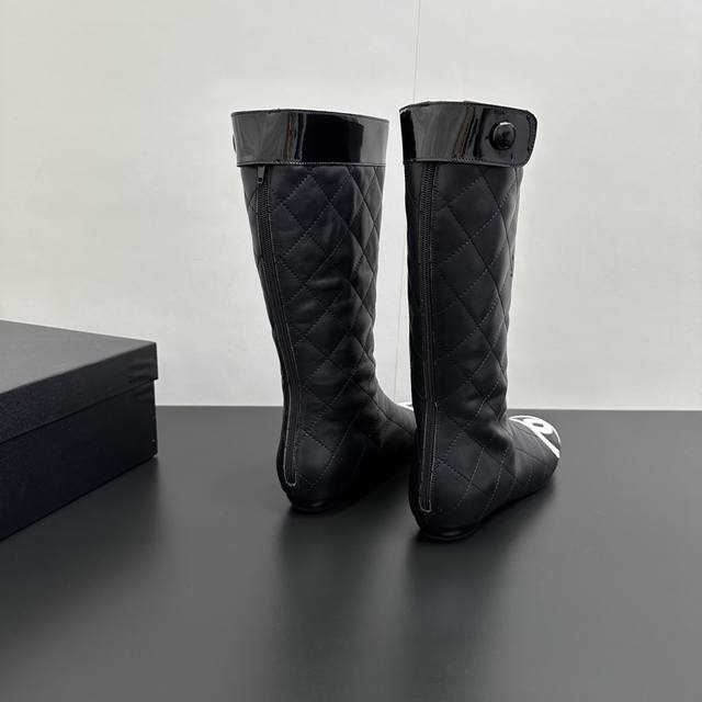 / 2025秋季Chanel香奈儿康鹏系列菱格纹后拉链平底长靴重磅来袭菱格纹是香奈儿的经典元素,精致又显贵气,鞋头的大双C标识超有辨识度~黑白两色都很绝,皮质细腻高