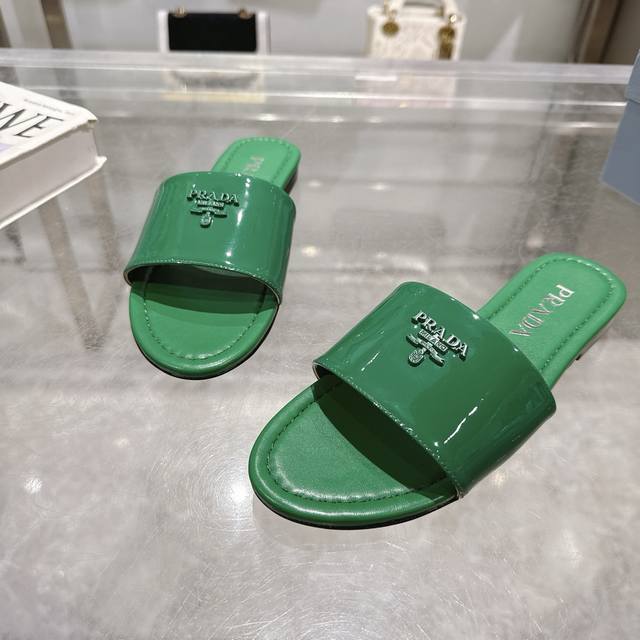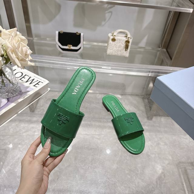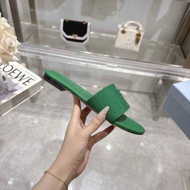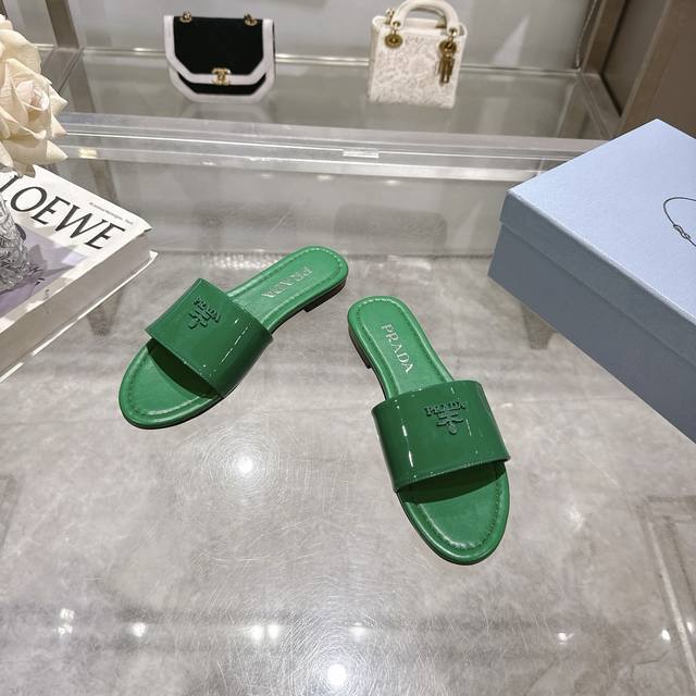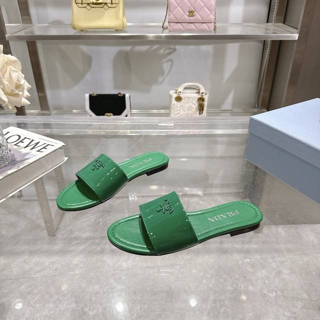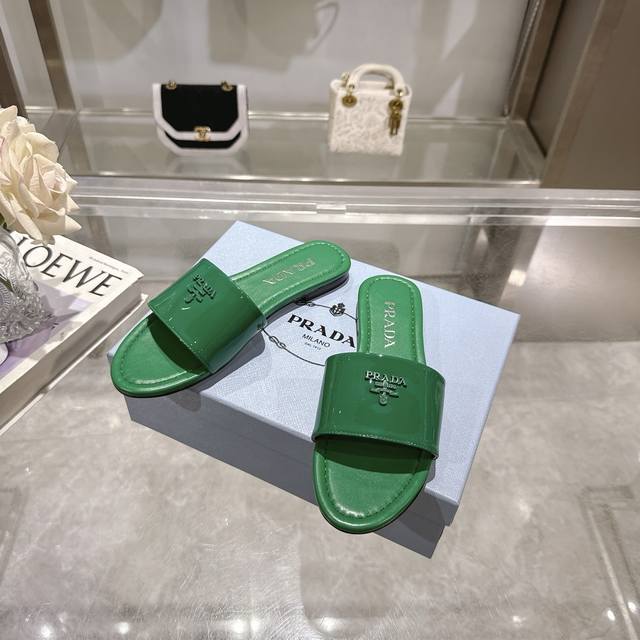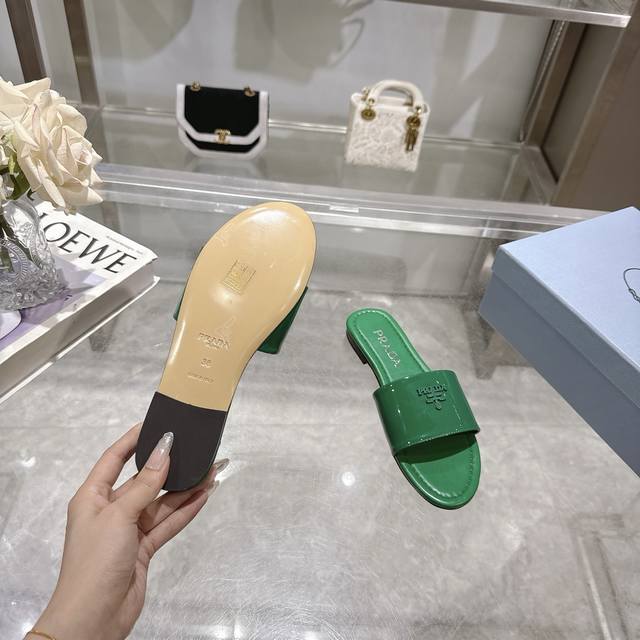 2025 Prada最新爆款拖鞋 工厂P价P 性价比版本 采用顶级牛漆皮料做材料 配上通勤率极高的真皮大底 一款不需要小心呵护的夏日必备单品 码数35-40M标准码 6个颜色 配标准包装