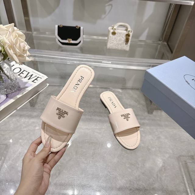 2025 Prada最新爆款拖鞋 工厂P价P 性价比版本 采用顶级牛漆皮料做材料 配上通勤率极高的真皮大底 一款不需要小心呵护的夏日必备单品 码数35-40M标准码 6个颜色 配标准包装