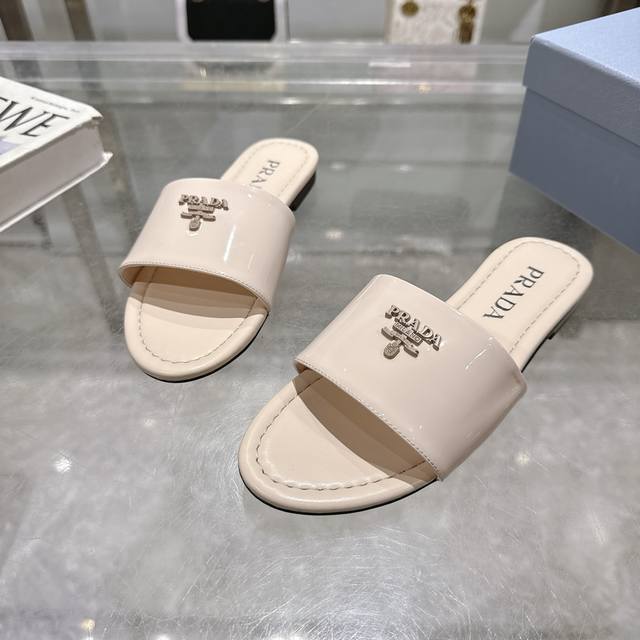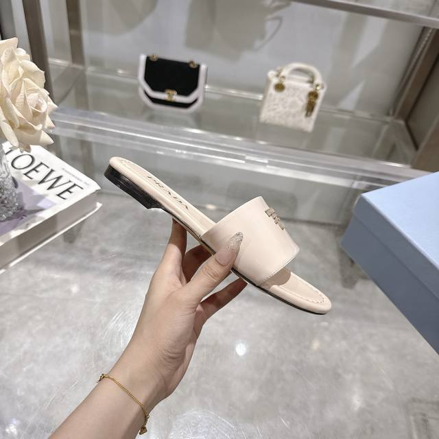2025 Prada最新爆款拖鞋 工厂P价P 性价比版本 采用顶级牛漆皮料做材料 配上通勤率极高的真皮大底 一款不需要小心呵护的夏日必备单品 码数35-40M标