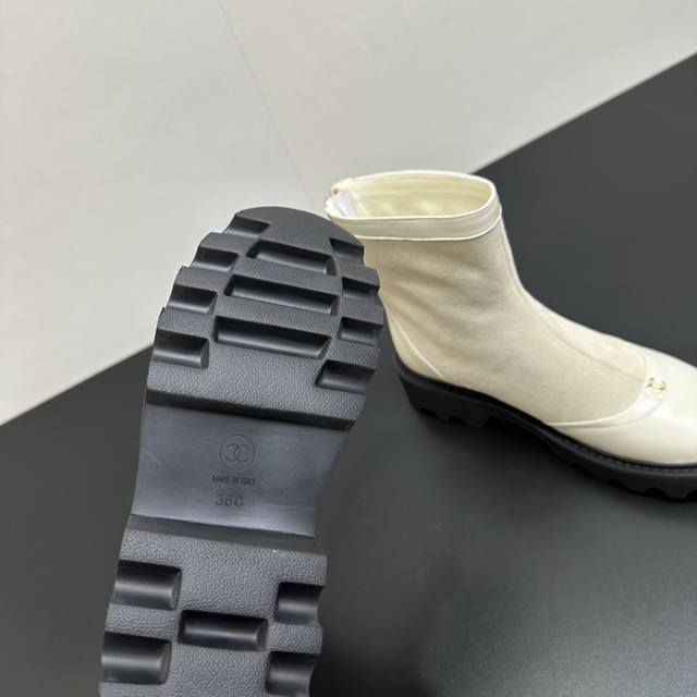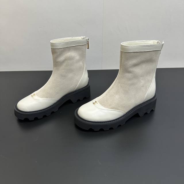 2025Chanel小香拼接后拉链短靴,本季秋冬季必备单品!! 香奈儿秋冬重工爆款短靴 小红书力推款,怎么搭配都好看,时髦精必备,香奈儿女士钟爱简约又难以抗拒搭配展现与众不同的穿搭风格、自由混搭闪耀到位跟紧香奶奶时尚步伐!!!精致细节放大看原版开模五金扣 顶级版本代购级别打造★鞋面采用头层牛皮-羊皮内里,橡胶底 码数35-39 40 41订