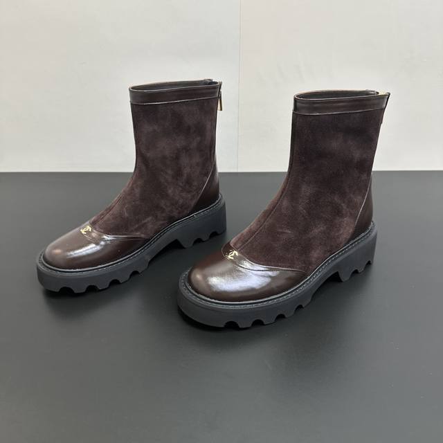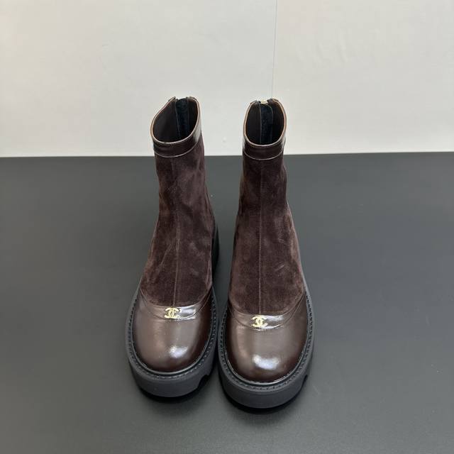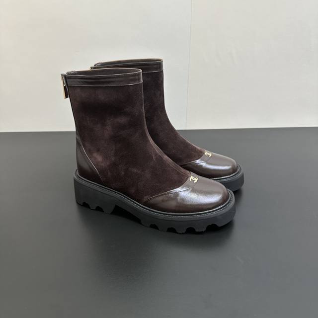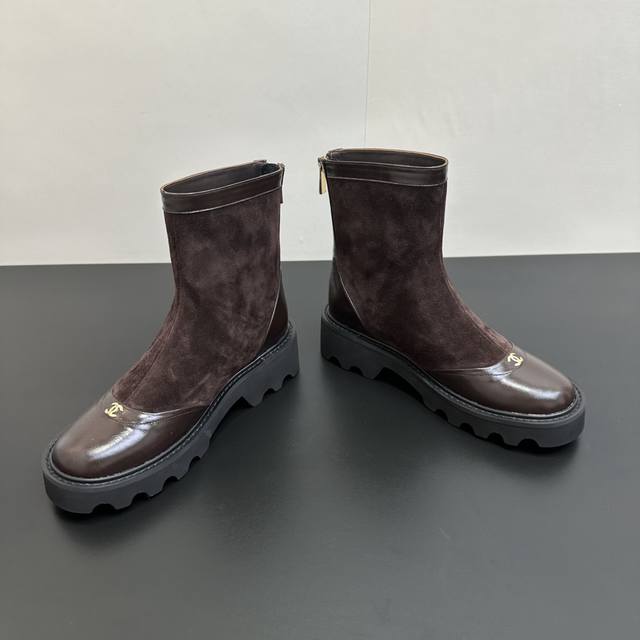 2025Chanel小香拼接后拉链短靴,本季秋冬季必备单品!! 香奈儿秋冬重工爆款短靴 小红书力推款,怎么搭配都好看,时髦精必备,香奈儿女士钟爱简约又难以抗拒搭配展现与众不同的穿搭风格、自由混搭闪耀到位跟紧香奶奶时尚步伐!!!精致细节放大看原版开模五金扣 顶级版本代购级别打造★鞋面采用头层牛皮-羊皮内里,橡胶底 码数35-39 40 41订