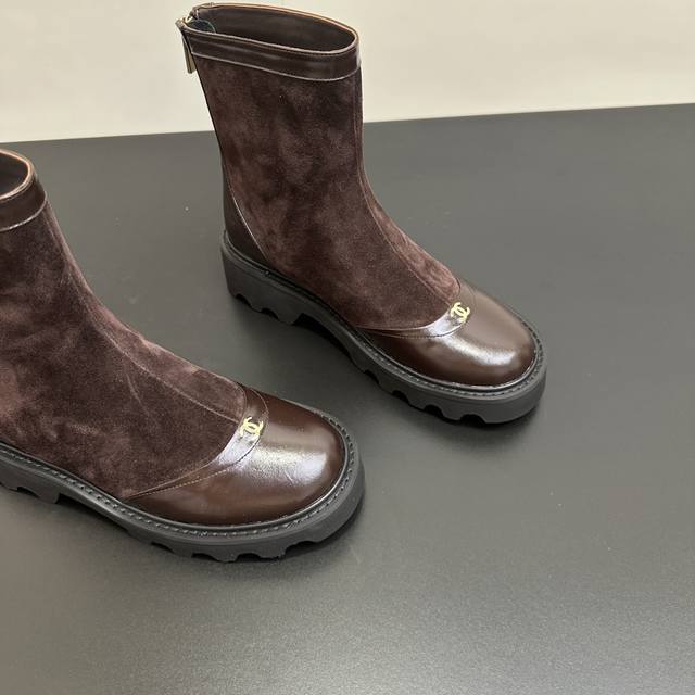 2025Chanel小香拼接后拉链短靴,本季秋冬季必备单品!! 香奈儿秋冬重工爆款短靴 小红书力推款,怎么搭配都好看,时髦精必备,香奈儿女士钟爱简约又难以抗拒搭