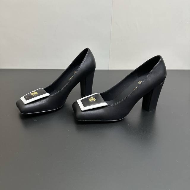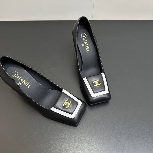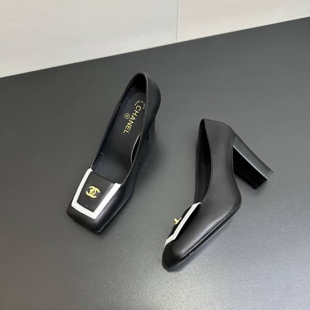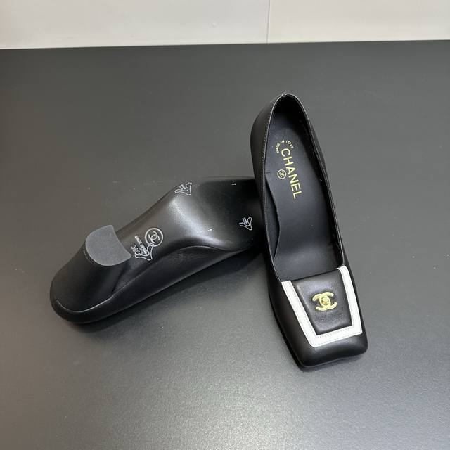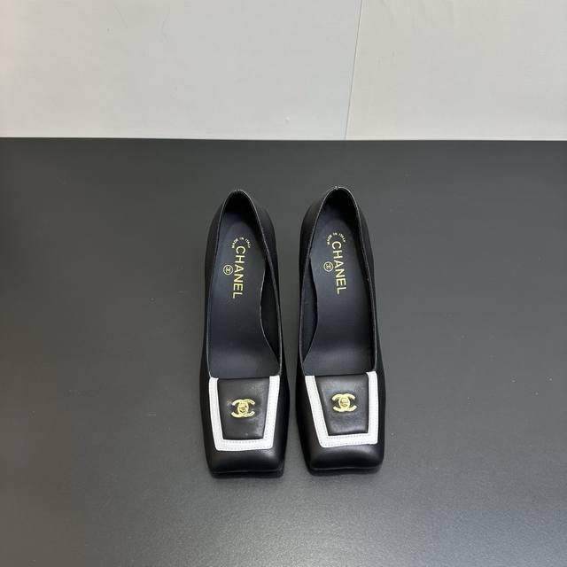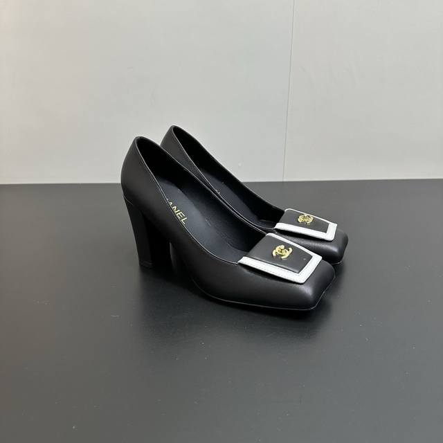 / 2025Ss Chanel香奶奶香奈儿粗跟拼接盖子高跟单鞋 经典方头轮廓,流畅利落,适配多种风格穿搭。鞋身点缀标志性双C Logo,细节之处彰显奢华质感 。适中