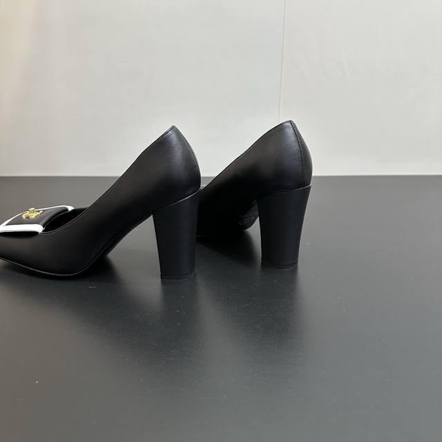 2025Ss Chanel香奶奶香奈儿粗跟拼接盖子高跟单鞋 经典方头轮廓,流畅利落,适配多种风格穿搭。鞋身点缀标志性双C Logo,细节之处彰显奢华质感 。适中