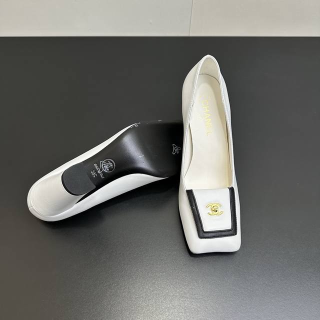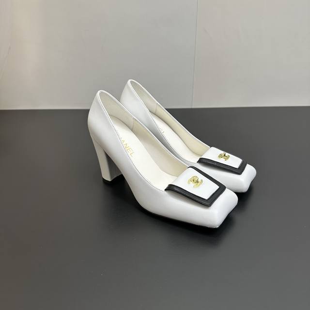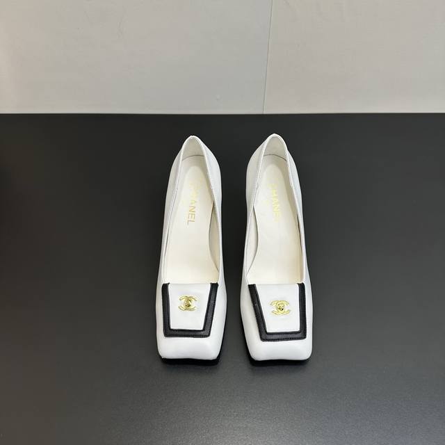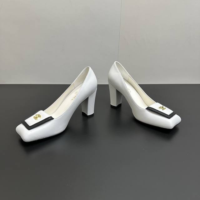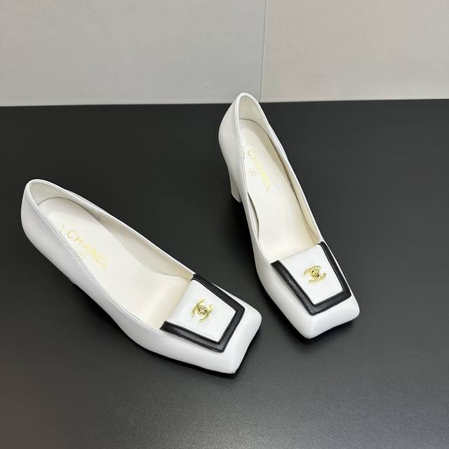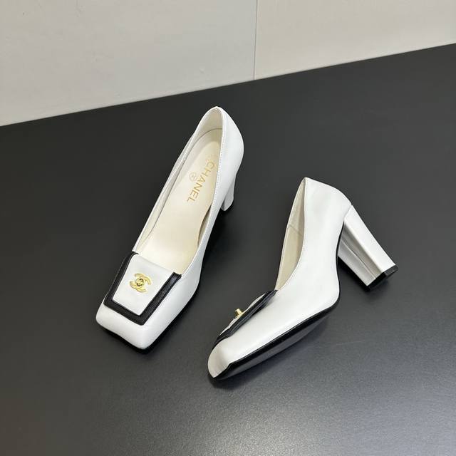 / 2025Ss Chanel香奶奶香奈儿粗跟拼接盖子高跟单鞋 经典方头轮廓,流畅利落,适配多种风格穿搭。鞋身点缀标志性双C Logo,细节之处彰显奢华质感 。适中