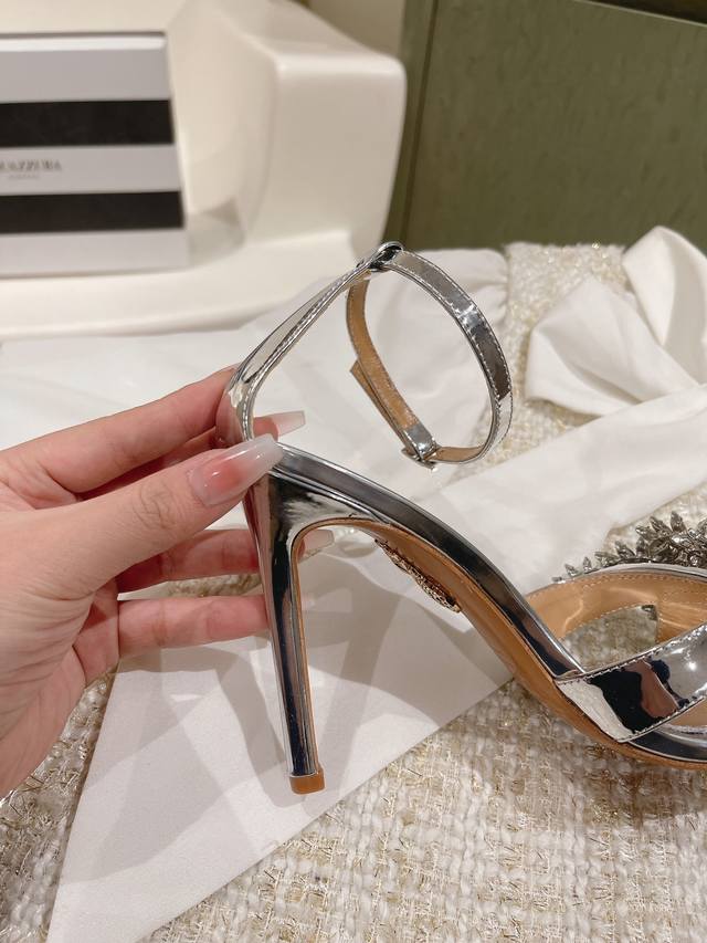 224 Aquazzur* 菠萝早春专柜新品仙女时装鞋系列,大量上新同步官网全系列均可定制龙年主打一个火爆,全网各大网红纷纷开秀,绝美的穿搭系列! ★★★★★ 鞋面 真丝私膜五金烫钻扣 内里 原版定制柔软羊皮 意大利真皮大底 跟高 10Cm 码数 34-42 34 40 41 42 定制不退换 专柜同步礼盒包装!