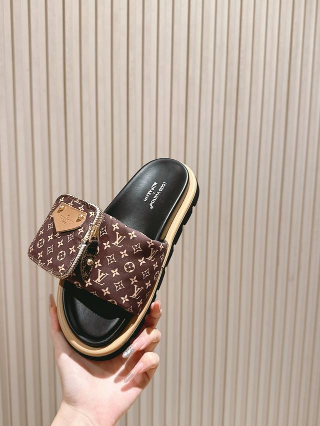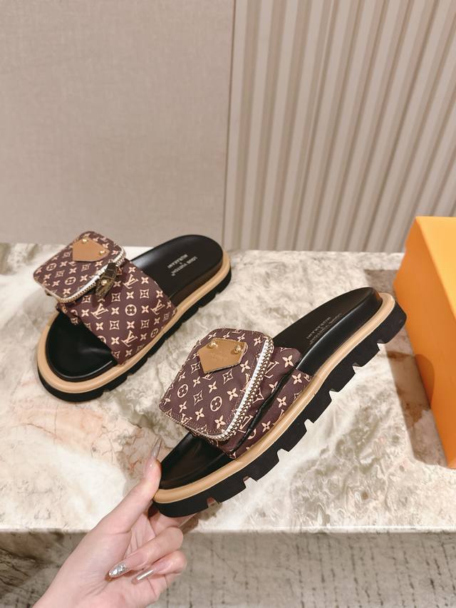 225 Lv路易威登驴家新品 顶级版本专柜主打最新款驴牌拖鞋 硬货上新口袋款 代购级别!高级感十足!国内外博主刷爆的一款,复古又时髦 上脚美炸了!官网主推款!