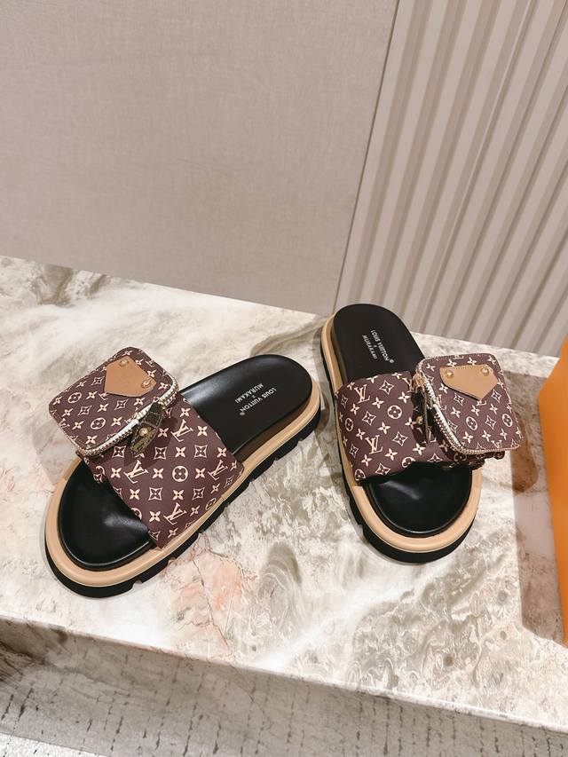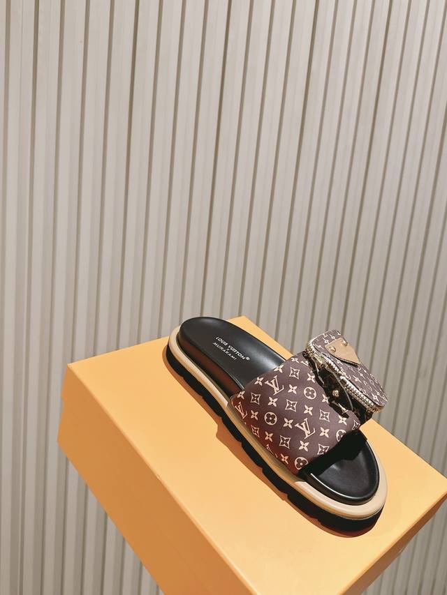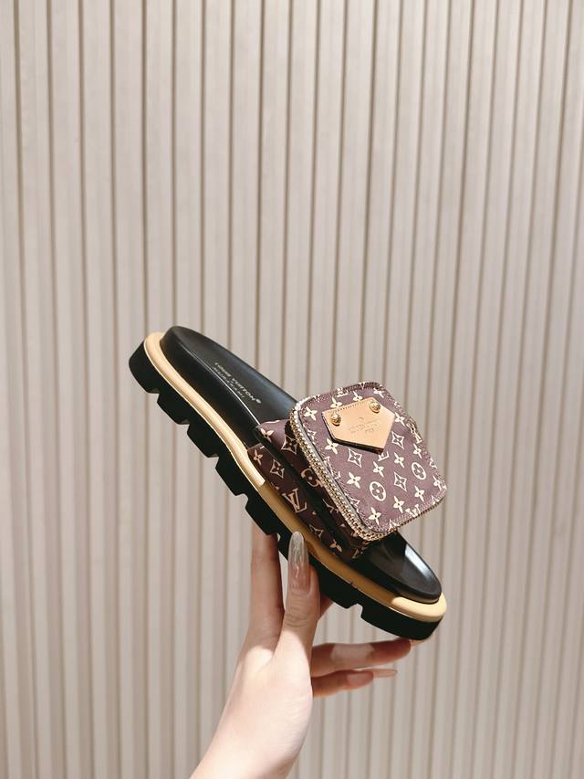 / 225 Lv路易威登驴家新品 顶级版本专柜主打最新款驴牌拖鞋 硬货上新口袋款 代购级别!高级感十足!国内外博主刷爆的一款,复古又时髦 上脚美炸了!官网主推款!