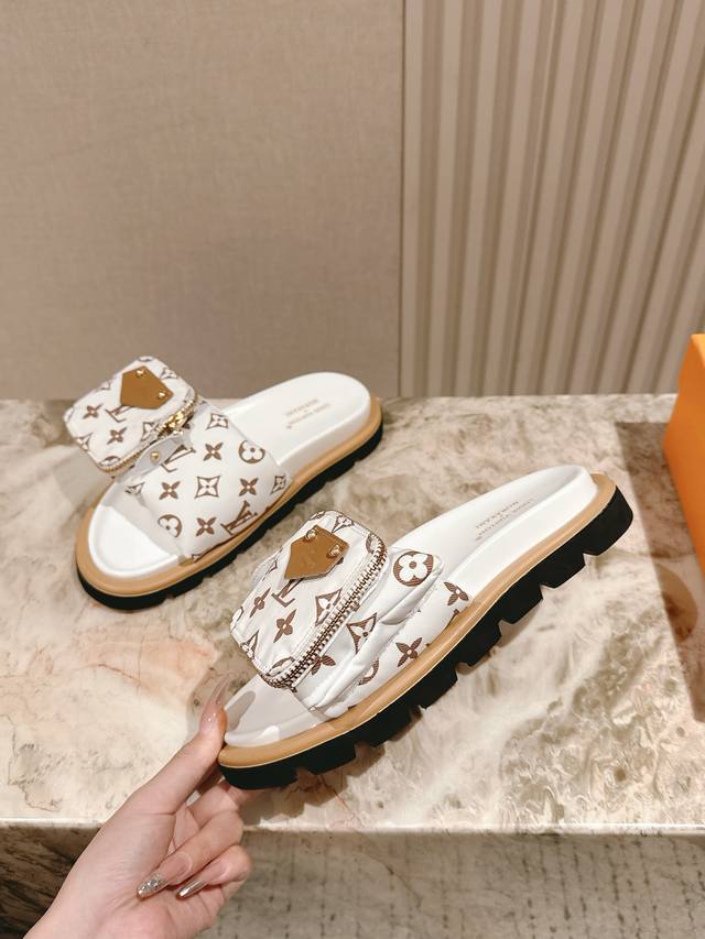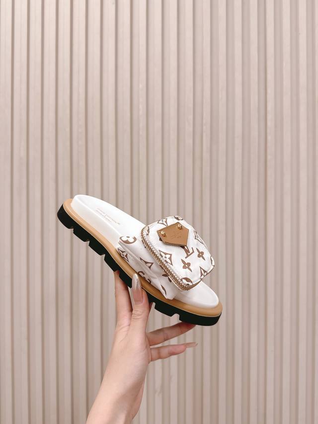 / 225 Lv路易威登驴家新品 顶级版本专柜主打最新款驴牌拖鞋 硬货上新口袋款 代购级别!高级感十足!国内外博主刷爆的一款,复古又时髦 上脚美炸了!官网主推款!