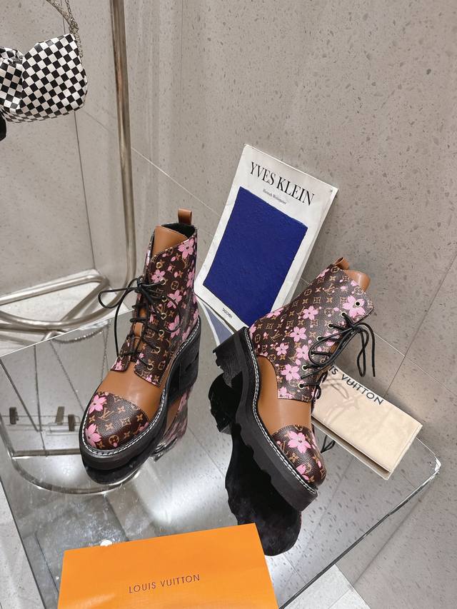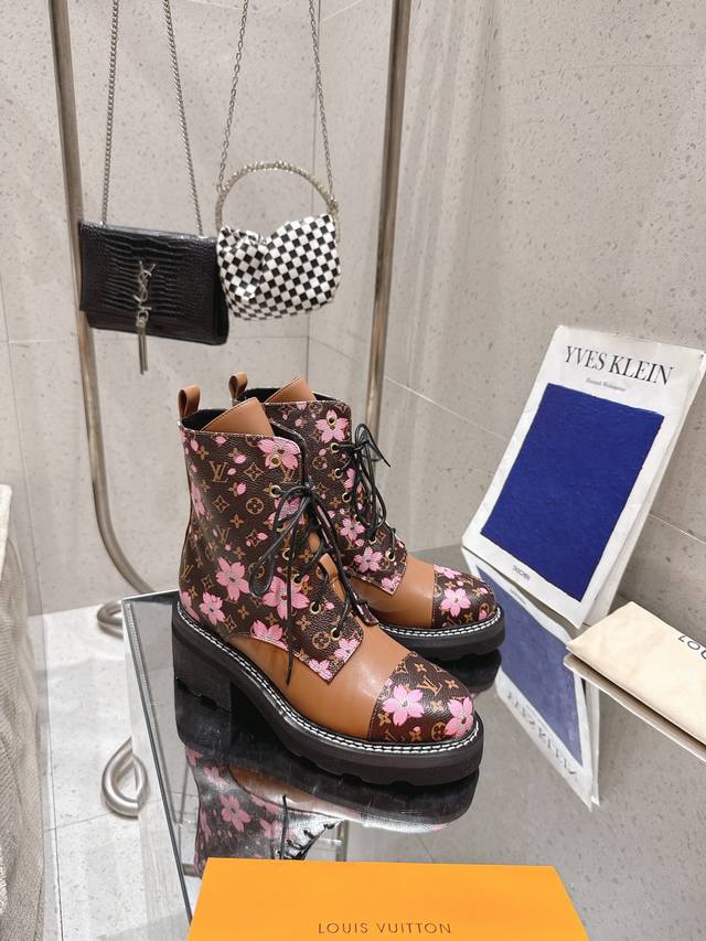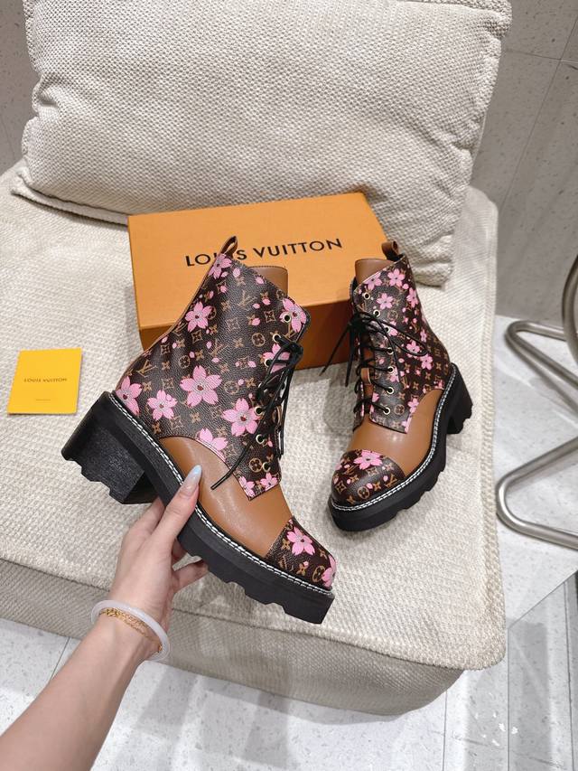 Loui& Vuitto& 秋冬新品短靴 驴家的靴子上脚都非常好看 鞋子黑色和老花的拼接恰到好处!侧面搭配Lv标志的金属扣精致特别...