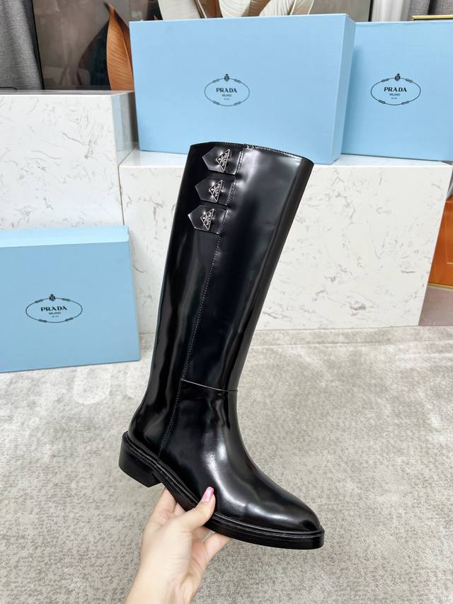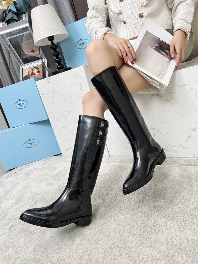 / 35-40 41定做 顶奢版本“Prada 普拉达”经典三角标尖头靴 Prada能在重要场合用得上了,清新风带点小贵气的感觉,上脚非常完美显腿瘦气质这块刚好拿捏