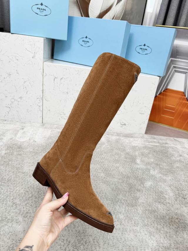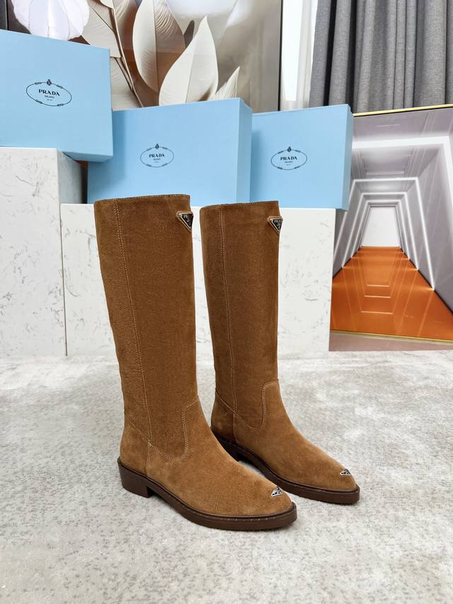 / 35-40 41定做 顶奢版本“Prada 普拉达”经典三角标尖头靴 Prada能在重要场合用得上了,清新风带点小贵气的感觉,上脚非常完美显腿瘦气质这块刚好拿捏