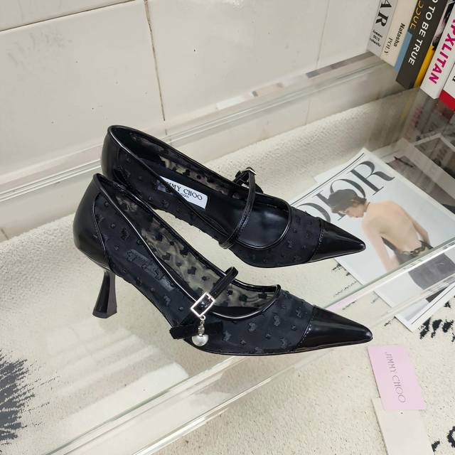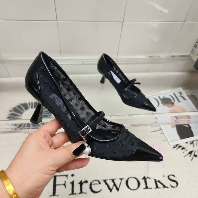 / 400 顶级版本 Jimmy Choo Aren Pum 系列高跟鞋,心形印花网布拼抛光牛皮材质,尽显现代时髦品味。尖头造型,雕塑感鞋跟,再配以精美珍珠吊饰吸睛