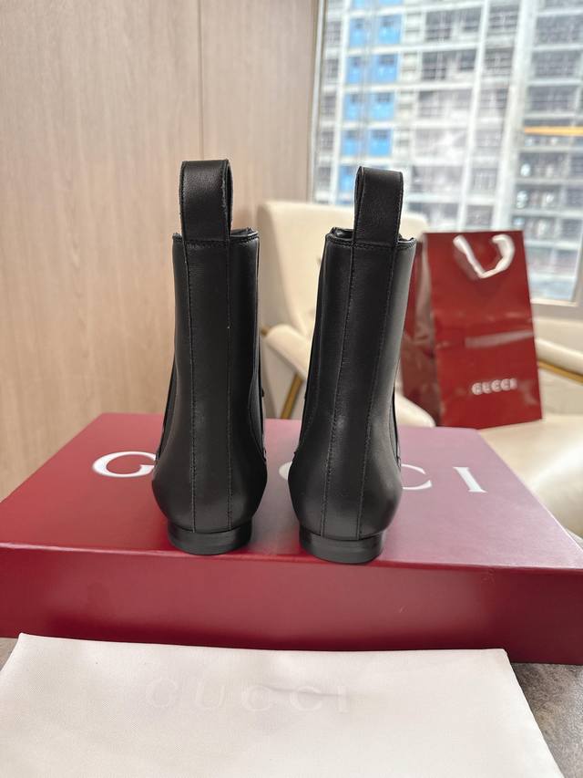 / 920-2 黑 35-42 Gucci Jordaan系列乐福鞋是贯穿四季的经典单品。这款踝靴焕新演绎经典廓形,选用光面皮革,搭配浅金色调马衔扣,彰显别致魅力。