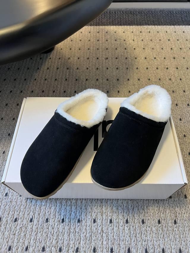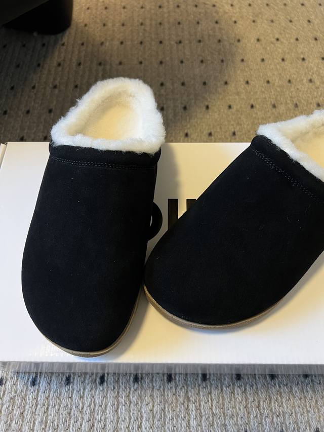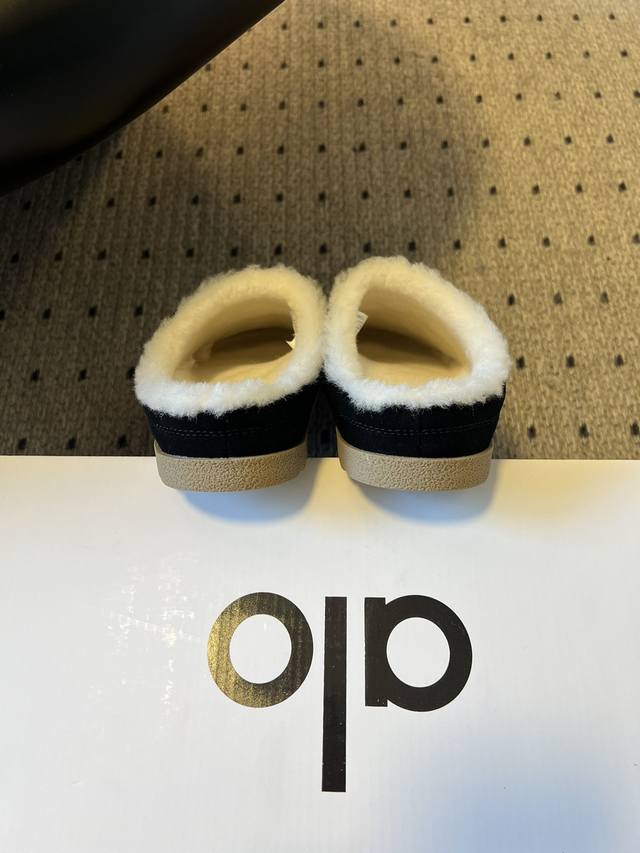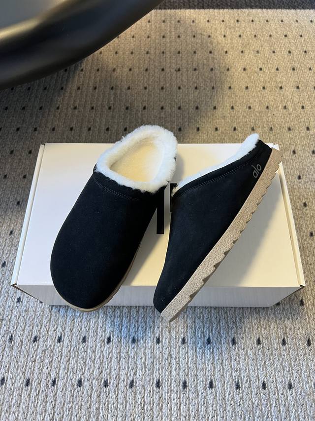 Alo25Ss 新品休闲包头羊毛拖 带飞机盒 简约即王道 散发随性慵懒感 一脚蹬设计 轻松又自在 时髦精出街 宅家都可 拿捏松弛氛围感 为日常注入随性与格调 鞋面选用质感上乘的麂皮材质,触感细腻又自带复古腔调。鞋口处包裹着蓬松柔软的毛绒,不仅看着温暖治愈,贴合脚部时更是能带来云朵般的舒适包裹感。整体外观简约大方,没有多余的繁杂设计,不管是居家穿着享受慵懒时光,还是搭配休闲服饰出街,都能轻松适配,为你打造出随性又有格调的穿搭风格。 材质:麂皮 内里:羊皮 毛里 大底:橡胶 Size:35-40