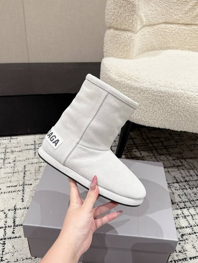 Balenciaga 巴黎世家 秋冬新款 25 中筒纯羊毛厚底雪地靴 简直不要太帅 设计感满满打破传统雪地靴的沉闷臃肿 个性十足 秋冬搭配小卫裤 牛仔裤 紧身裤真的不要太洋气好看了~ 面料:丝光牛反绒 内里:羊毛 大底:橡胶大底防滑耐磨 Size:#35-40 40定制不退换