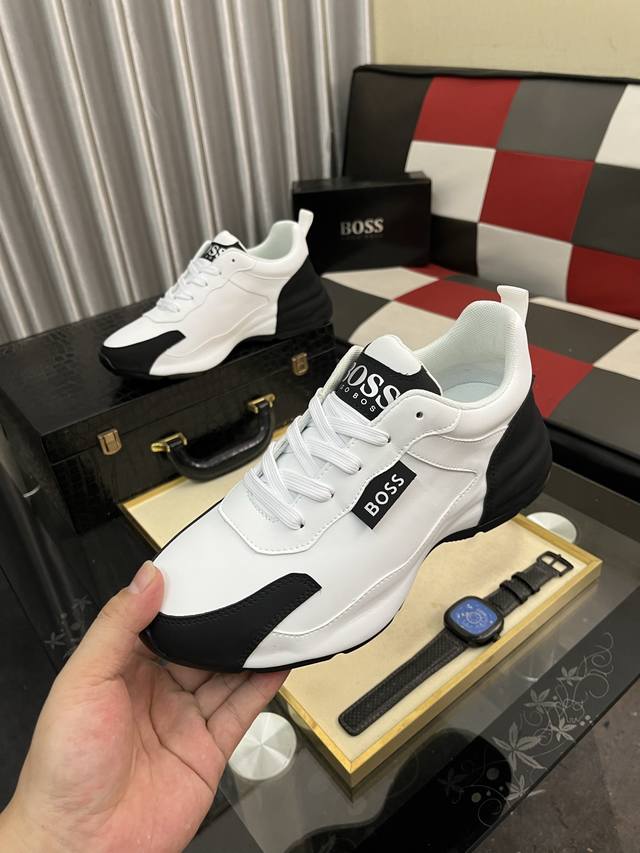 Boos 男鞋休闲鞋原单品质鞋面采用进口小牛皮,超透气舒适内里做工精细,高端大气。有时尚典范造型。发泡透明耐磨大底,穿着舒适,值得拥有。码数:38–444色可选