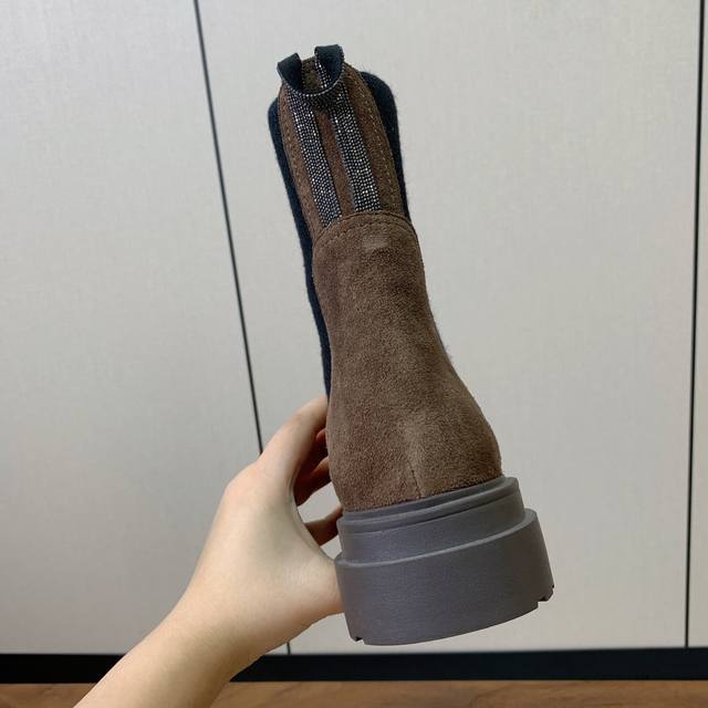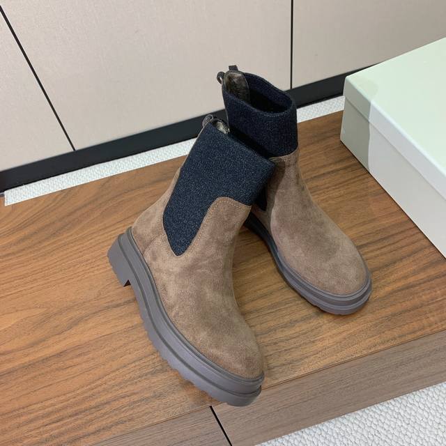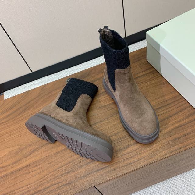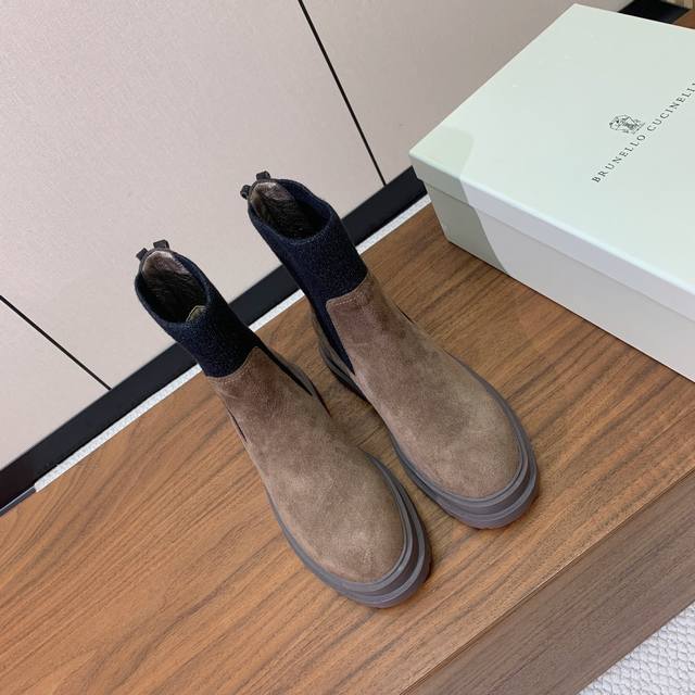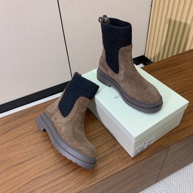 Brunell* Cucinell* 新款短靴。鞋面牛反绒,牛皮。羊皮内里,原版开模五金,橡胶大底。 码数:35-42 36、41、42定制不退换