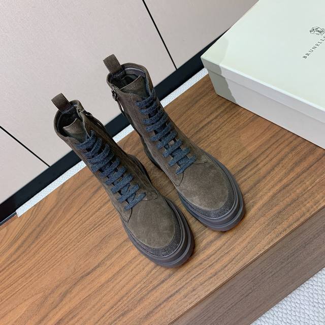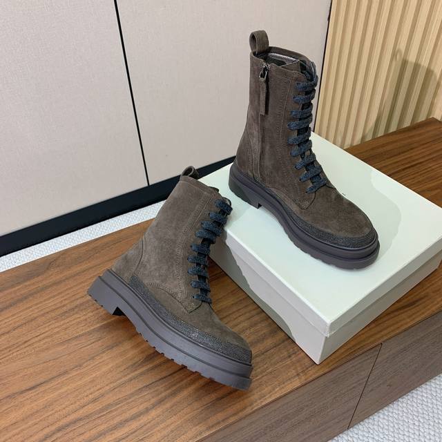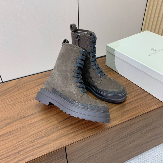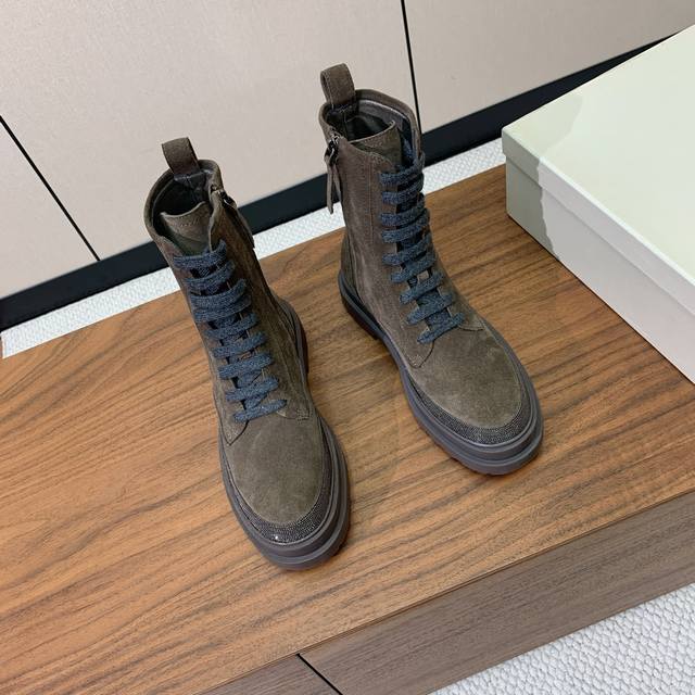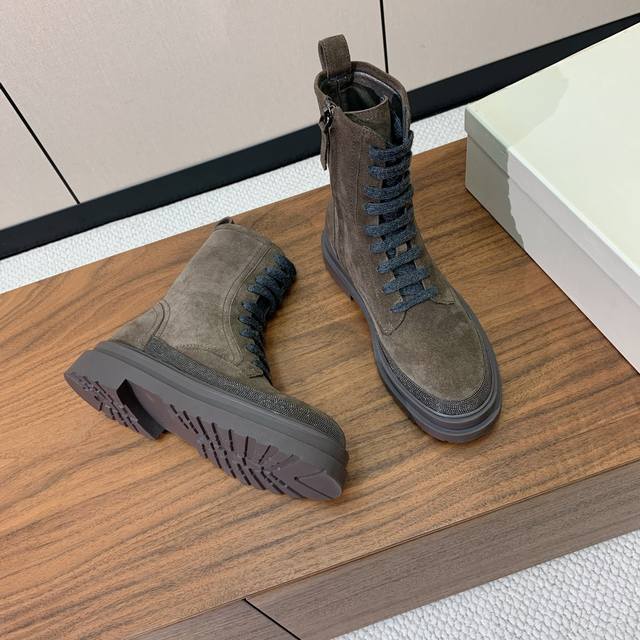 Brunell* Cucinell* 新款绑带短靴。鞋面牛反绒,牛皮。羊皮内里,原版开模五金,橡胶大底。 码数:35-42 35、41、42定制不退换