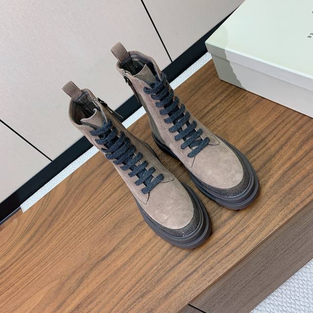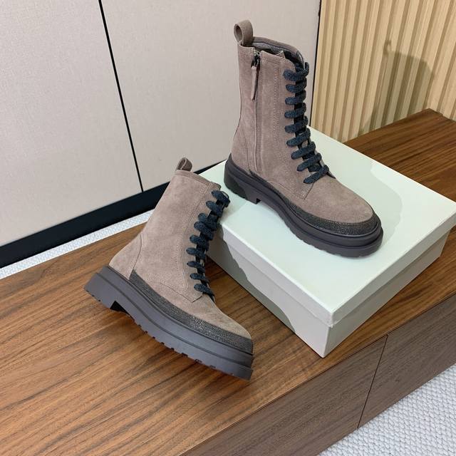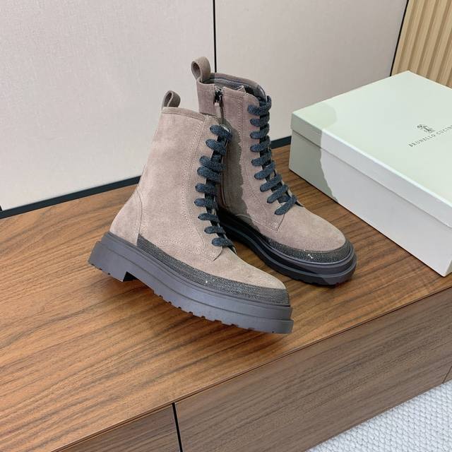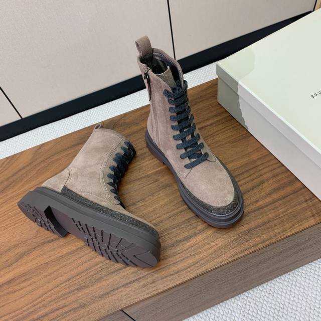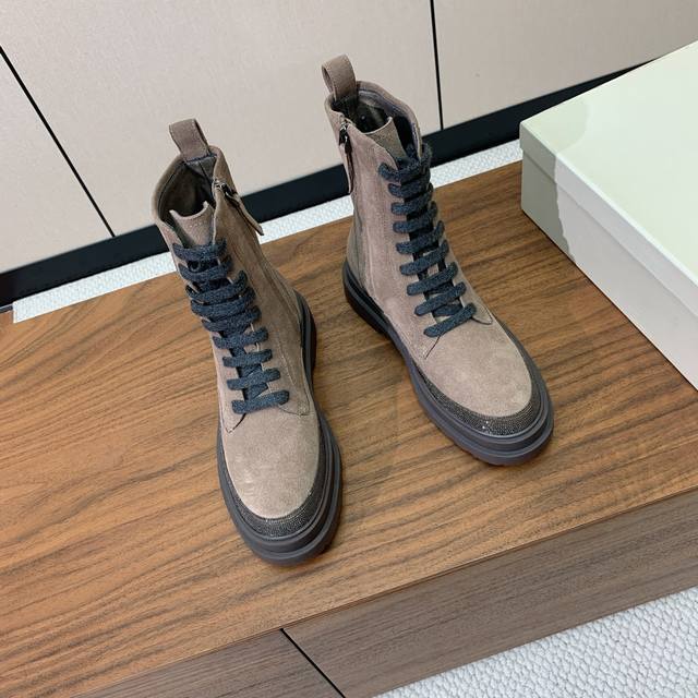 Brunell* Cucinell* 新款绑带短靴。鞋面牛反绒,牛皮。羊皮内里,原版开模五金,橡胶大底。 码数:35-42 35、41、42定制不退换