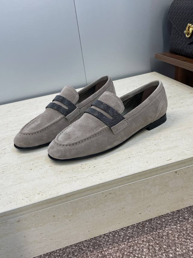 Brunello Cucineli 布鲁内诺库奇内利2025秋冬新款串珠女鞋 Bc 平底圆头复古乐福单鞋 材质:鞋面进口小牛皮 进猄麂皮+水染羊皮内里+意大利注塑真皮大底 Size:35-39 40 41 42 定做不退换