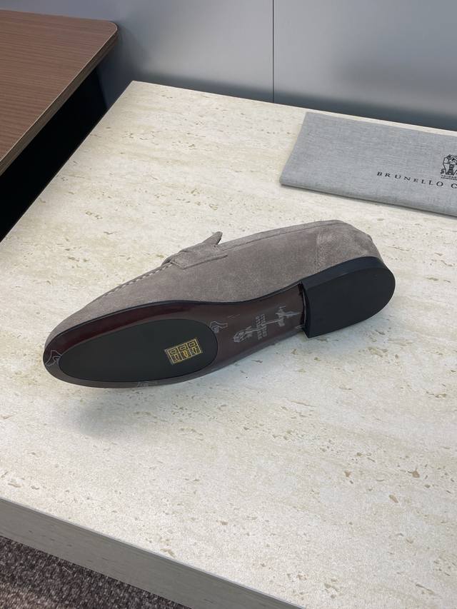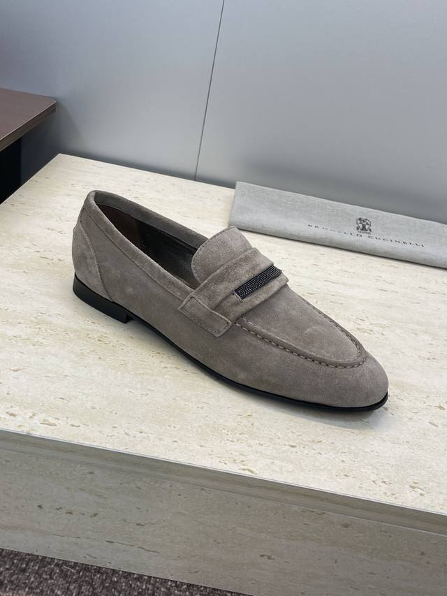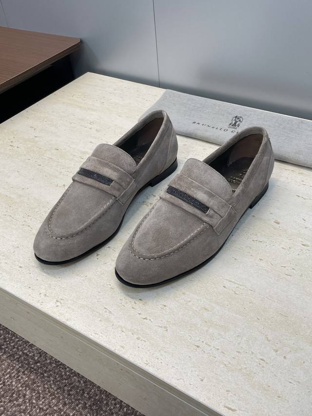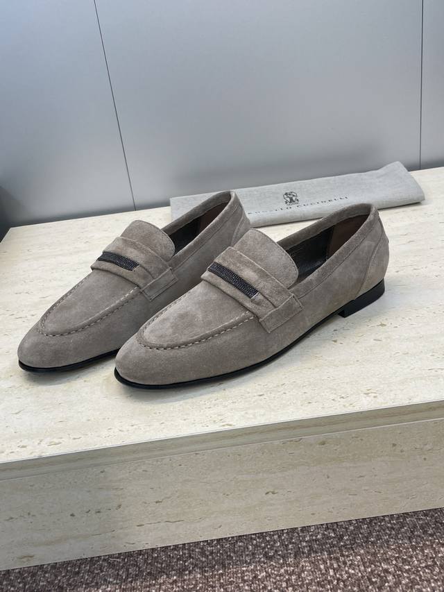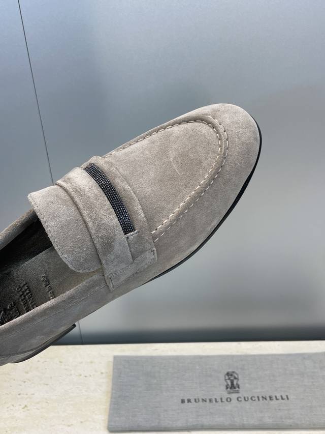 Brunello Cucineli 布鲁内诺库奇内利2025秋冬新款串珠女鞋 Bc 平底圆头复古乐福单鞋 材质:鞋面进口羊猄麂皮+水染羊皮内里+意大利注塑真皮大底 Size:35-39 40 41 42 定做不退换