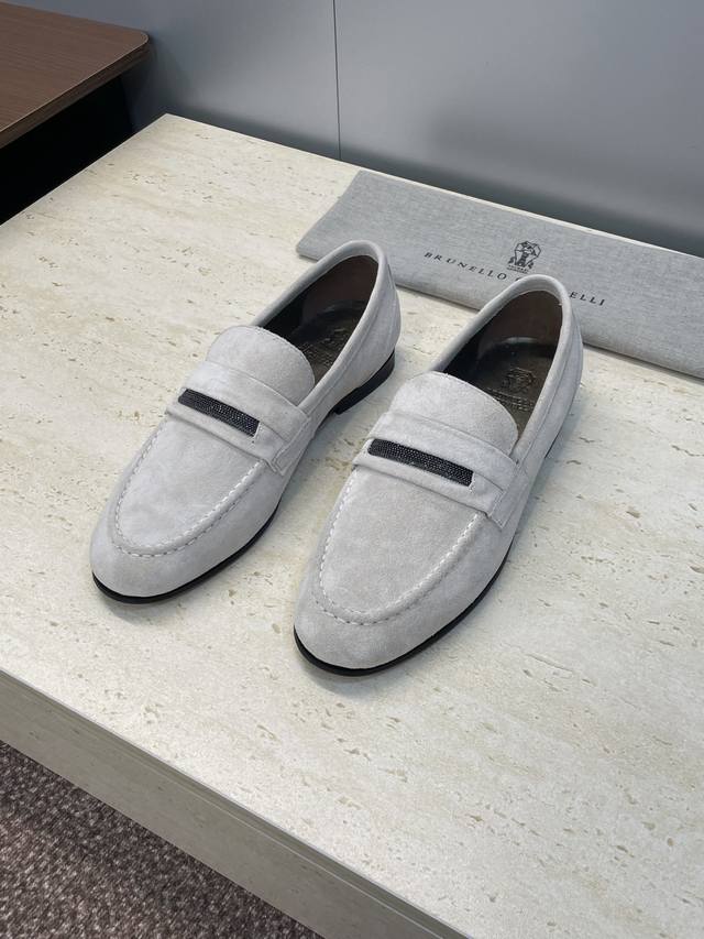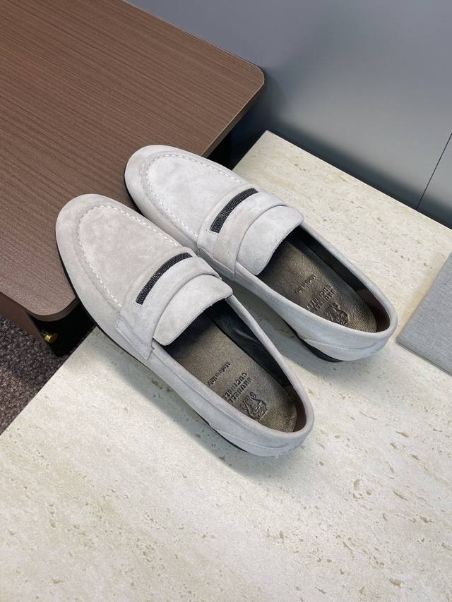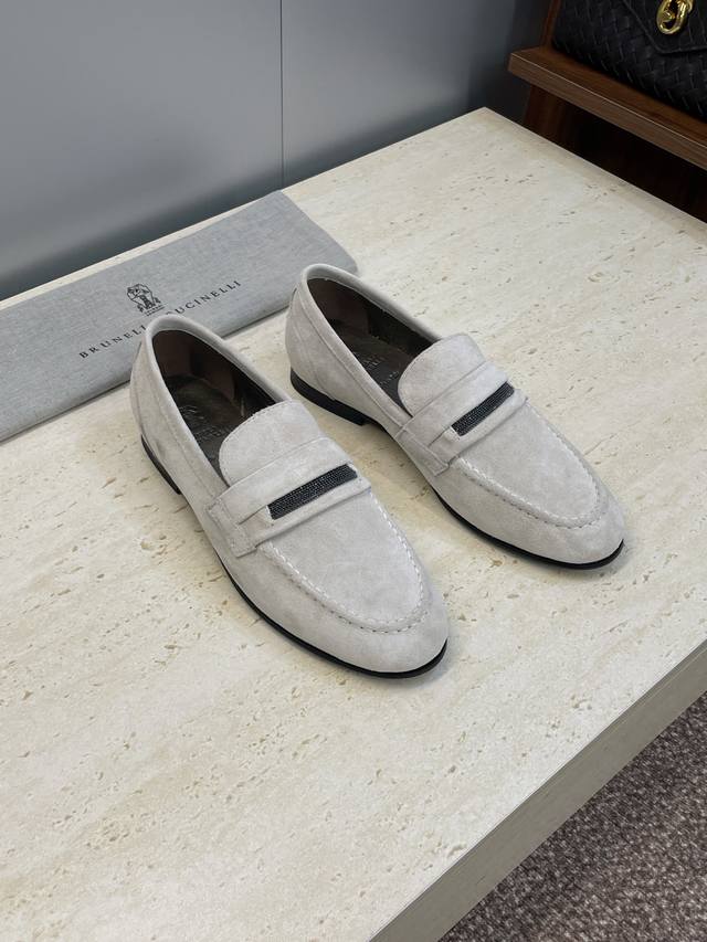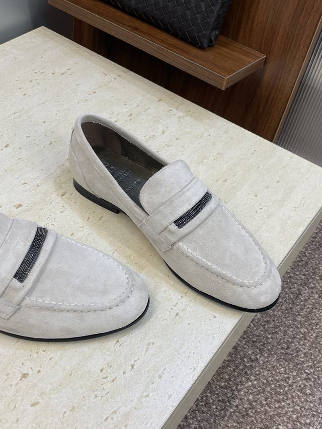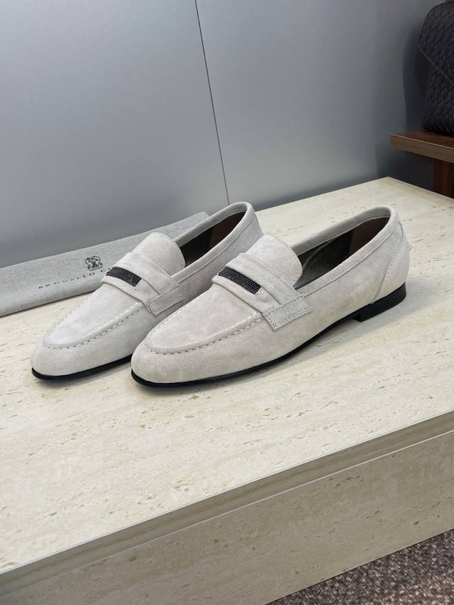 Brunello Cucineli 布鲁内诺库奇内利2025秋冬新款串珠女鞋 Bc 平底圆头复古乐福单鞋 材质:鞋面进口羊猄麂皮+水染羊皮内里+意大利注塑真皮大底 Size:35-39 40 41 42 定做不退换