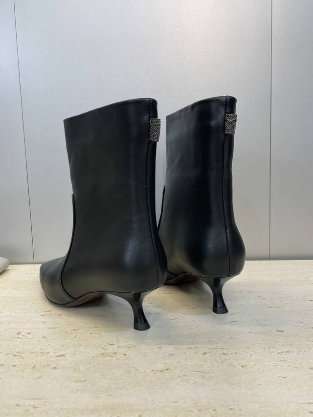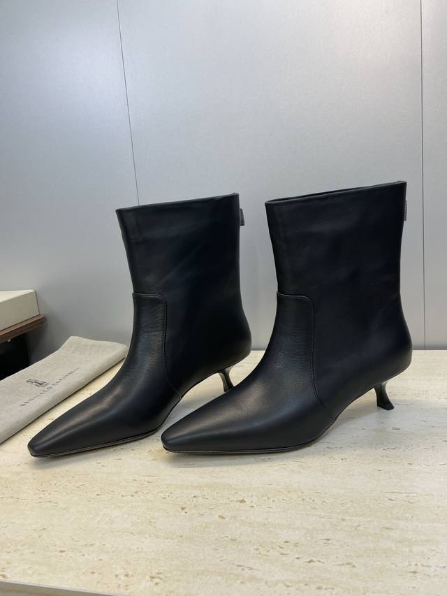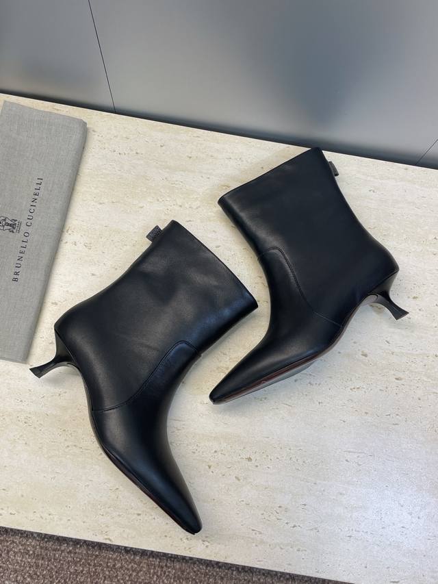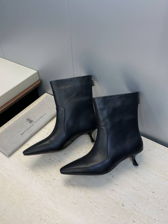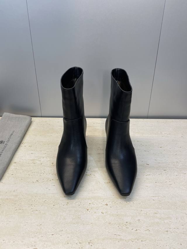 Brunello Cucineli 布鲁内诺库奇内利2025秋冬新款游牧风格女短靴 Bc 低跟尖头机车骑士马丁靴 材质:鞋面进口小牛皮 进口羊猄麂皮+水染羊皮内里+意大利注塑真皮大底 跟高:3Cm Size:35-39 40 41 42 定做不退换