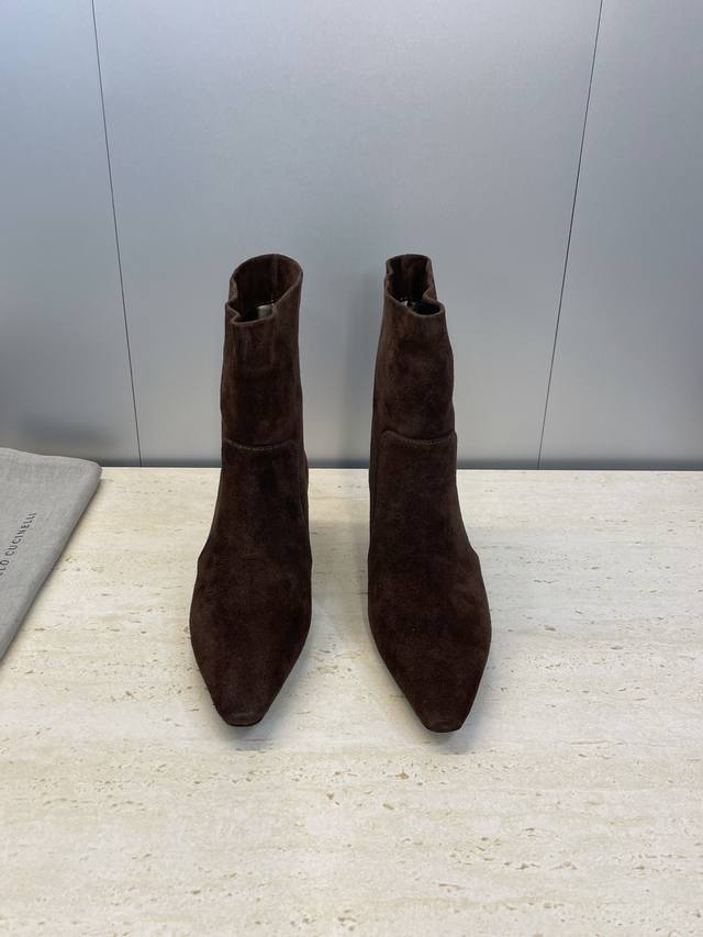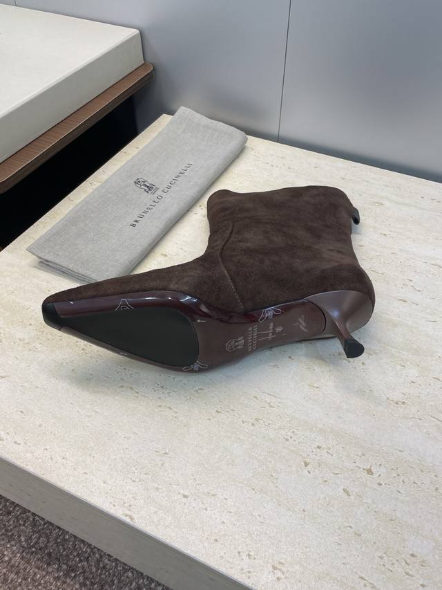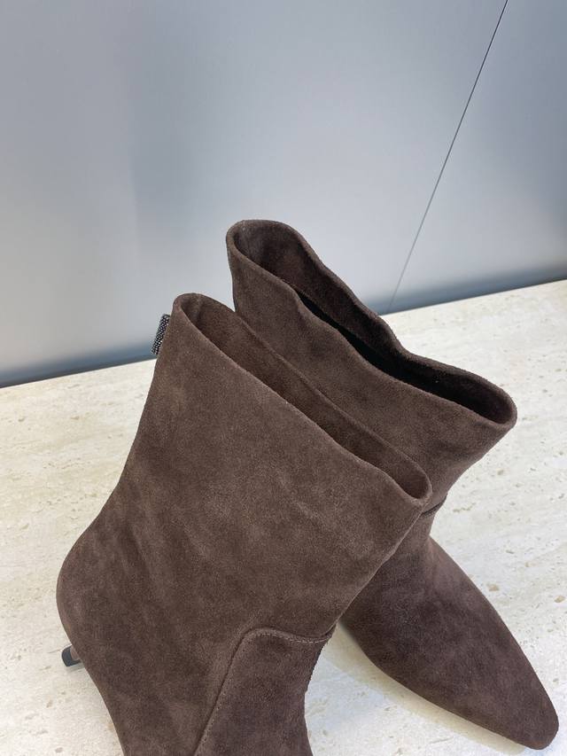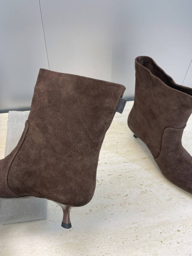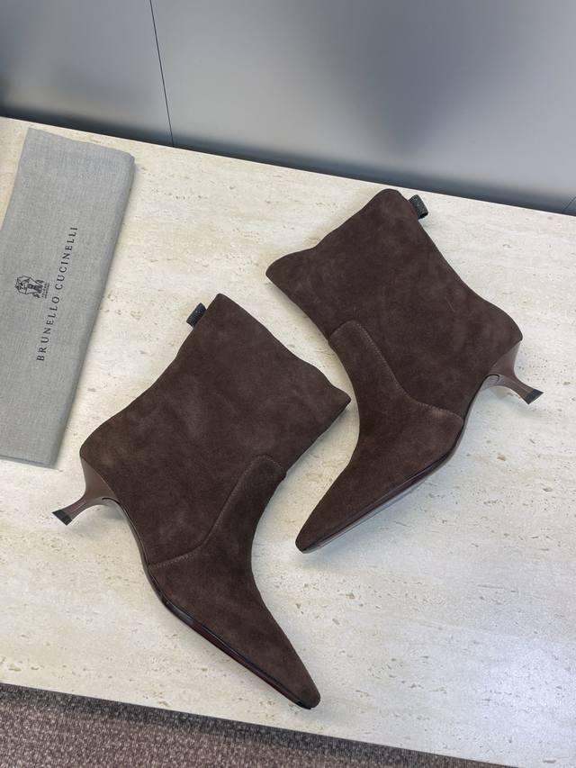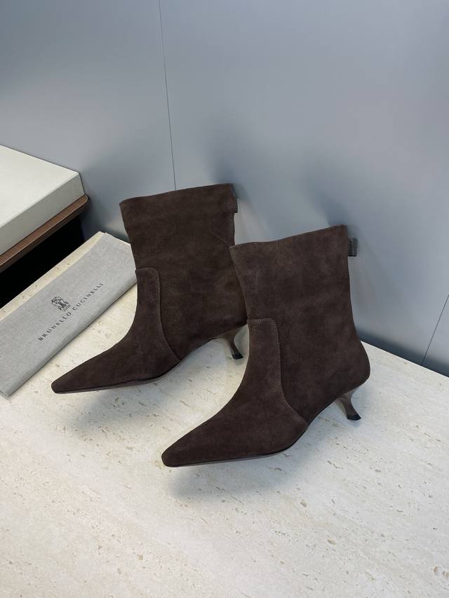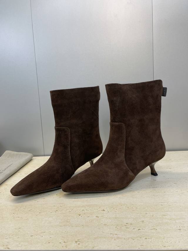 / Brunello Cucineli 布鲁内诺库奇内利2025秋冬新款游牧风格女短靴 Bc 低跟尖头机车骑士马丁靴 材质:鞋面进口小牛皮 进口羊猄麂皮+水染羊皮内
